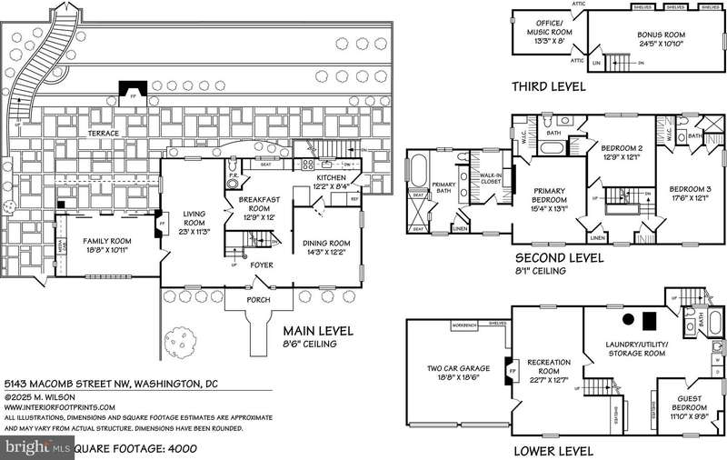 OPEN SUN 9/14 2-4PM! Beautiful stone Colonial on tranquil block of desirable Kent set on large and elegantly landscaped lot. Main level features foyer, former living room with fireplace, dining room, kitchen with adjoining breakfast room, powder room, and large family room with walkout to lovely patio with fireplace, terraced gardens, and flat yard space. The second level features three bedrooms, each with en suite bath, including an expansive primary suite with dressing room and en suite bath with separate soaking tub and shower. Lofty third floor features flex bedroom/bonus room space. Lower level features large family/rec room with fireplace, bedroom, full bath, plentiful storage, and access to the home's attached 2-car garage with additional driveway parking.