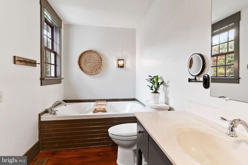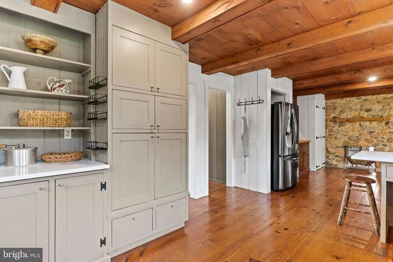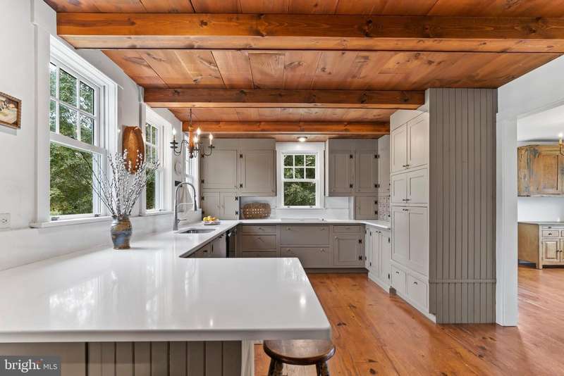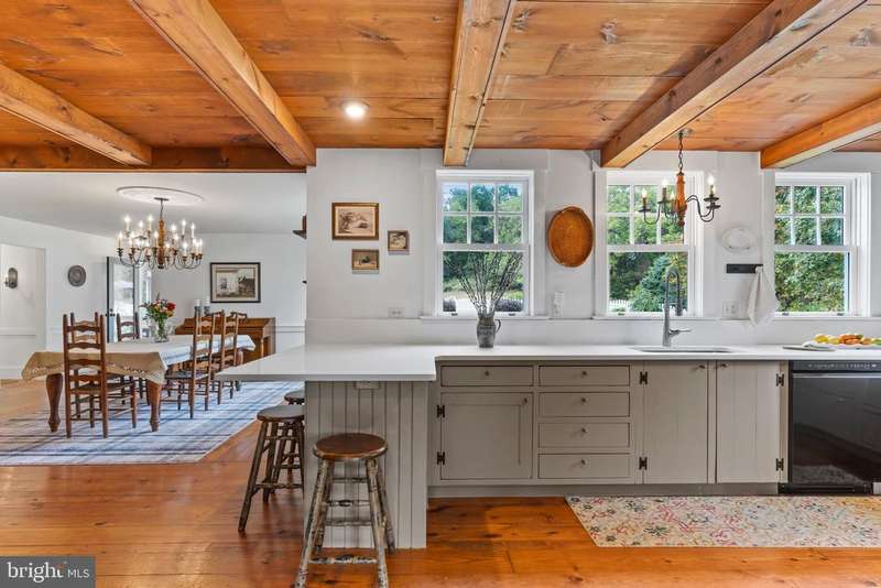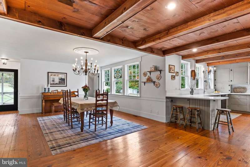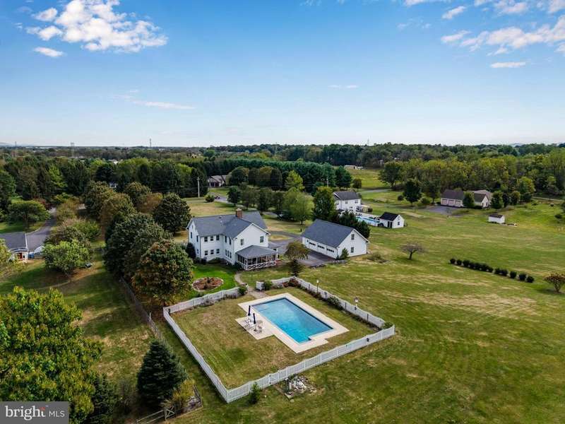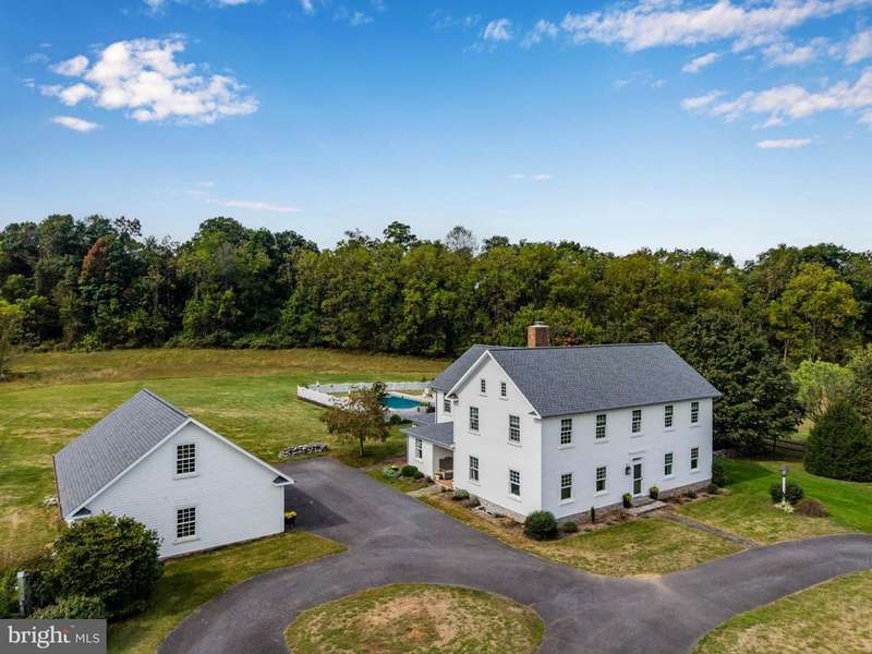 A picturesque long driveway highlighted by beautiful, mature sugar maple trees paves the way to this stunning home, formerly showcased in Country Living magazine. You're guaranteed to appreciate this beautifully designed modern Colonial, nestled upon 5 acres of serene countryside. Custom-built in 2003, this home blends timeless craftsmanship with current, and recent modern finishes throughout. Reclaimed, random-width pine flooring salvaged from a historic Connecticut barn, pairs seamlessly with painted knotty pine trim and woodwork and many period-inspired fixtures. The centerpiece of this home features a fantastic Kitchen and Dining Room, with solid wood cabinetry with inlaid doors, brand new quartz counters, and nearly brand new black stainless steel Refrigerator, Dishwasher, built-in Wall Oven, Cooktop, and deep, stainless steel country sink, all contiguous through a beautiful beamed ceiling. Adjacent keeping room with built-in cabinets and pantry with aesthetic double-sided wood burning fireplace, constructed with stone from the property. Fluid entertaining in the grand Dining Room, with chandelier and northern facing wall of windows. The Formal Living Room is a wonderful space to relax in abundant natural light, with mantle and built-in cabinets. Foyer and Entryway provide passage to the den or office to provide a flex space for homeowners. Spacious First Floor half bath and Mudroom with utility sink and shelving, too. Two options to access the comfortable 2nd floor with brand new Stainmaster carpet in all four Bedrooms, including the private Primary Bedroom with faux brick fireplace, walk-in closet and built-in drawers, complete with en-suite bath highlighted by double vanities, jetted soaking tub, and shower. The additional Bedrooms offer generous spaces, one with a wall of built-in cabinets and desk, and plenty of windows for light, complimented by a guest Bath with shower/tub combo and custom vanity. The convenient second floor laundry room with utility sink and folding table also provides pull down access to attic for additional storage. Enjoy company in the finished Lower Level, complete with a fantastic wet bar adjacent to the Family Room which is wired for sound, and Bonus area which provides a wonderful option for in-home fitness. The 5th Bedroom offers privacy for guests or the perfect space for the craftsperson with adjacent bath. A show-stopping screened in porch with brick floor, beadboard ceiling, and double fans provides a relaxing space and leads to the beautiful 20x40 foot in-ground concrete and slate pool with white picket fence - brand new pool pump and filter installed in June of 2025. The detached 3-bay Garage with 2nd story for additional storage has elevated space for larger vehicles or project cars. This property is complete with a new Atlas Signature Select roof on the house and garage, new Rheem Performance Plus Hot Water Heater, geothermal heatpump, water conditioning, sun tunnel skylights, and much much more. All this in Cumberland Valley Schools, Silver Spring Township, and a fantastic location to call home for future homeowners. Don't wait to appreciate all the blends of timeless history and modern elements that this one-of-a kind home has to offer.