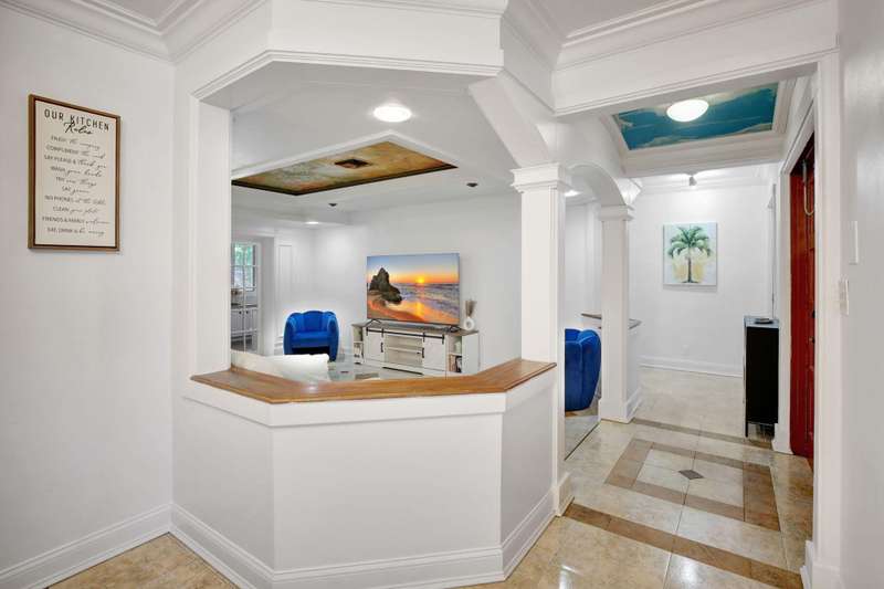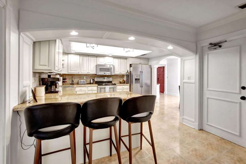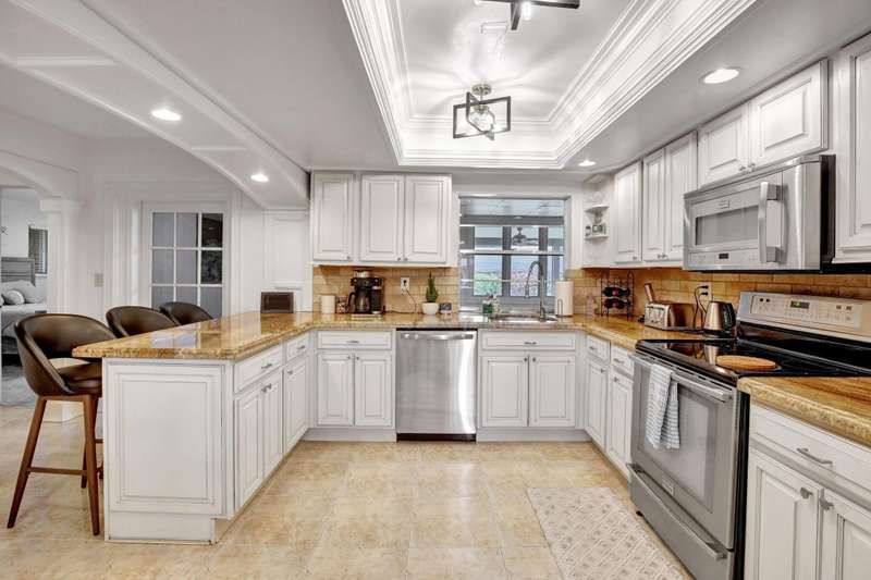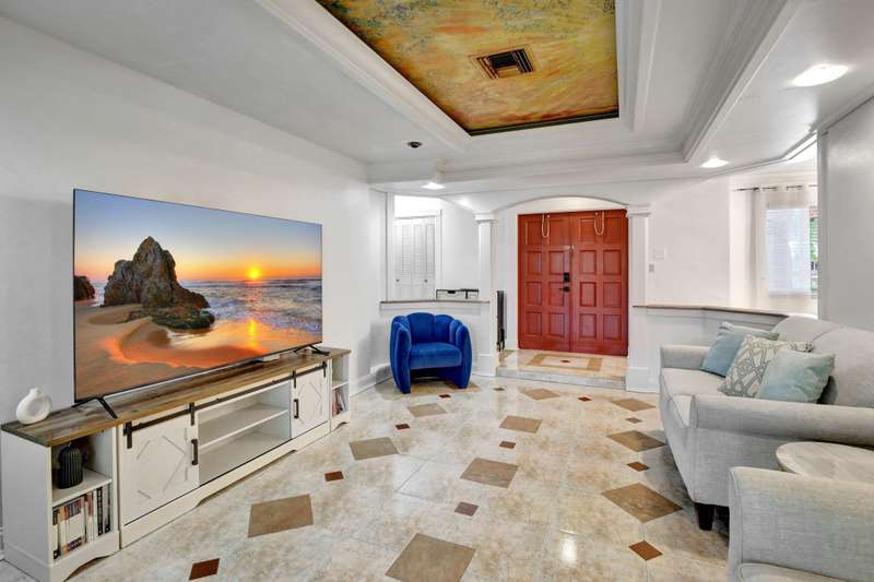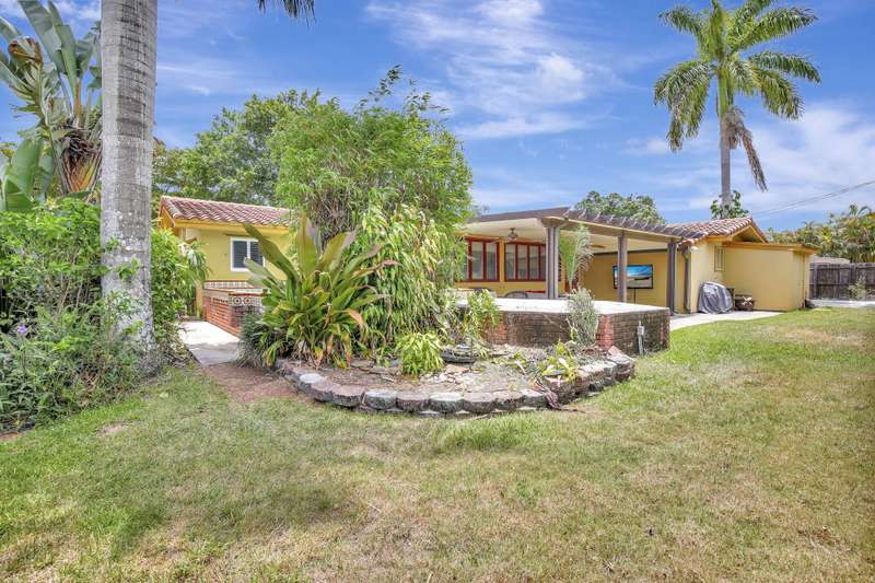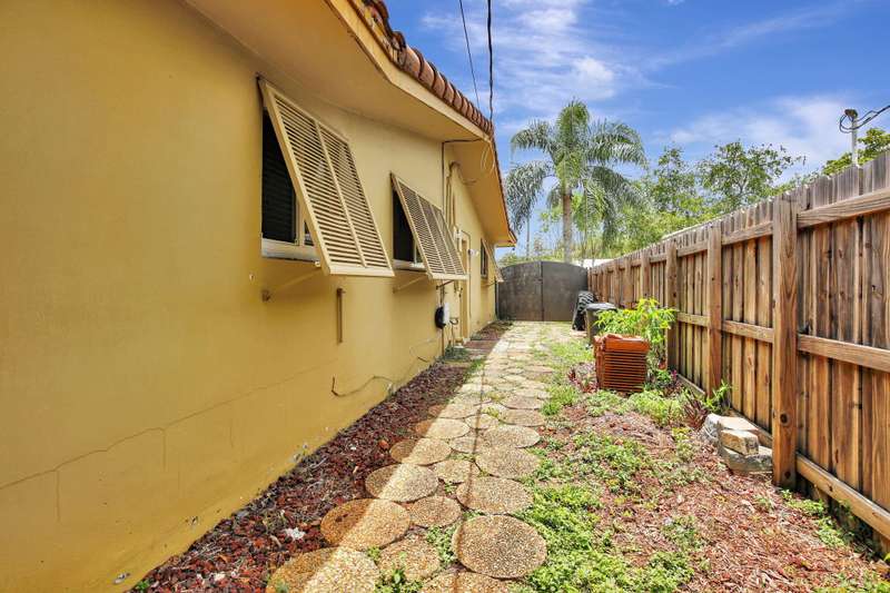 This well-kept four-bedroom, two-bathroom home offers fantastic savings with no HOA fees. It features plenty of storage space for boats and RVs, a securely fenced yard, and 10-foot metal gates. Inside, you'll find a spacious layout with coffered ceilings, a formal dining area, and a kitchen showcasing beautiful Indian granite countertops. Designed for comfort and peace of mind, the home includes high-impact windows, full storm protection, a sturdy barrel tile roof, and a transferable termite warranty. The enclosed flex space is great for a home office, gym, or game room. Outside, relax under a covered pergola with fans and lighting, take a dip in the sparkling pool, or enjoy the peaceful pond with a soothing fountain.