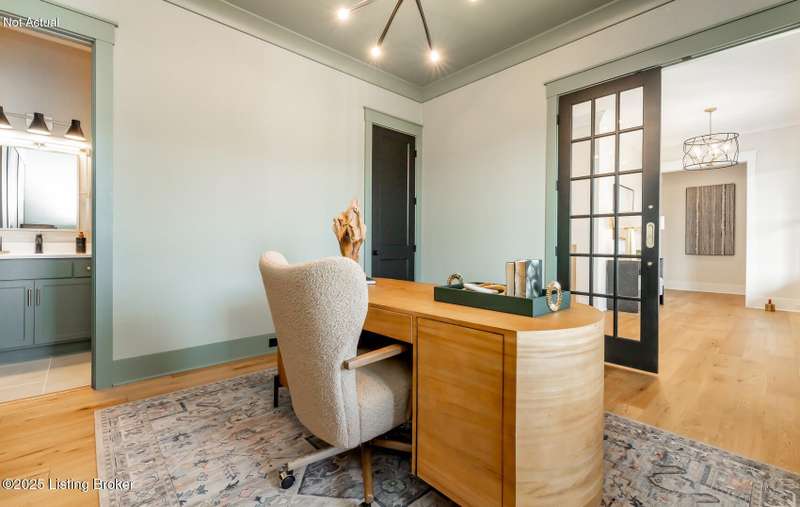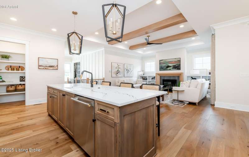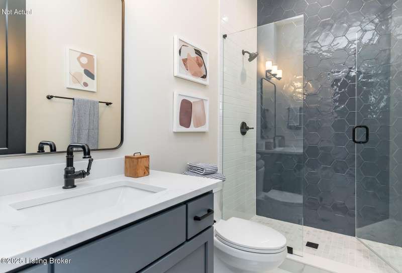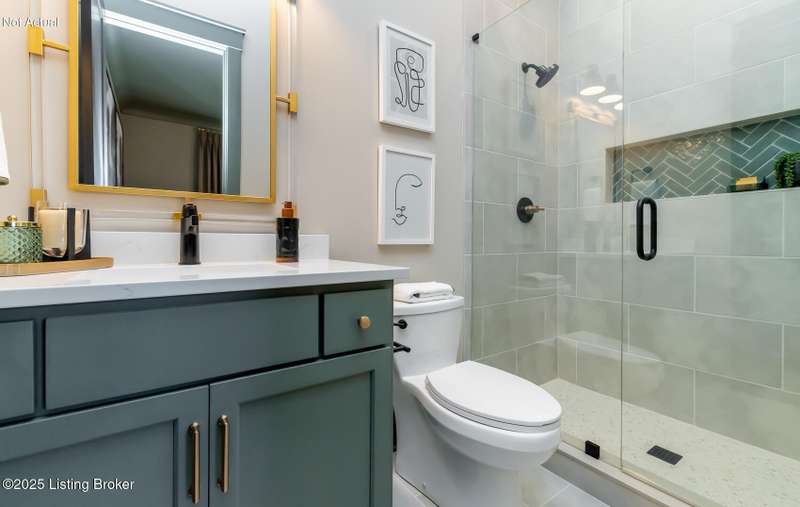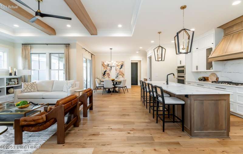 Prepare to be impressed by the exceptional craftsmanship and designer finishes in this stunning ONE-STORY home was featured in the 2024 Homearama Showcase! This beauty is located in the newest section of Norton Commons, The Hamlet, in the sought-after Oldham County section. This home sits on one of the larger lots in the community and offers over 2,400 finished square feet on ONE level! From the moment you step onto the charming covered front porch, you're welcomed into a bright and spacious foyer. A versatile front flex room with a full bath offers the perfect space for a fourth bedroom, home office, or guest suite. The open-concept layout seamlessly connects the great room, dining area, and gourmet kitchen--ideal for everyday living and effortless entertaining. Just off the dining area, a covered side porch, which has recently been screened in, with a cozy fireplace extends your living space outdoors. The private primary suite features a spa-like bath with a separate soaking tub and shower, creating the perfect retreat. A conveniently located laundry and mudroom sits at the rear of the home, just off the spacious 3-car attached garage. Designer details and upscale finishes are found throughout. The full basement includes an egress window and is already roughed in for a full bath--making future finishing easy and flexible. Storage shelving has been added in the basement for easy origination. Enjoy energy-efficient living with a geothermal HVAC system. Custom plantation shutters have been added throughout the home. Don't miss the opportunity to own a piece of Homearama excellence!