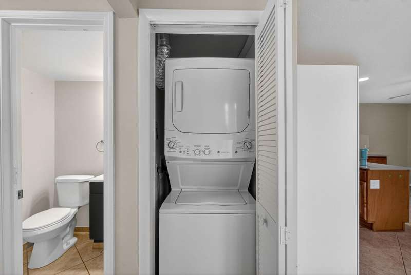 This condo offers two of the most sought-after features--an in-unit washer and dryer and central A/C--making it stand out from the rest. Located on the ground floor, this home is open, bright, and full of natural light. The updated kitchen includes a large island with cabinetry on both sides, a dishwasher, and a spacious pantry. Both bathrooms have been remodeled and the master features a walk-in shower, while the bedroom offers two walk-in closets for plenty of storage. Impact windows (except for the slider & front door) add peace of mind. A screened porch provides additional living space and convenient access to the parking lot.Don't miss this rare opportunity to own a beautifully updated condo with all the modern conveniences you've been searching for--schedule your showing today!