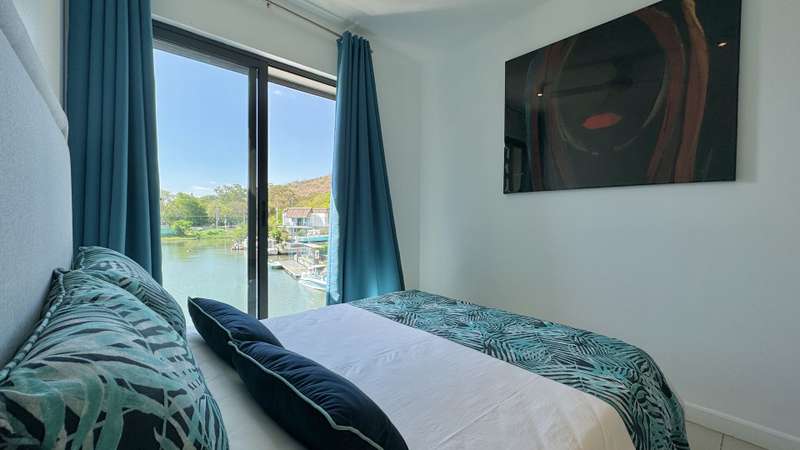 This 2-bedroom, furnished flat for sale is part of a sought after gated complex in the only residential marina in Mauritius, offering sea access and lovely views of the La Tourelle Mountain. As you enter, you are charmed by the open plan living space with contemporary kitchen and lounge area opening onto two private terrasses each boasting mountain views. The two bedrooms are equipped with air conditioning, wardrobes, en suite bathrooms and views of the marina. The residence has 24/7 security with built-in security systems and an electric gate. The apartment has a private parking space just a few steps from the unit, as well as additional visitors parking. Fully furnished and equipped, this ideal lock-up-and-go offers a wonderful lifestyle where you can easily access the Black River Lagoon ( paddle board is a must!), walk to the estate’s restaurant and bar, and become a member of the sports club where you can play a game of tennis, swim a lap and have a good gym workout. MAURITIAN RESIDENCY APPLICABLE UPON PURCHASE.