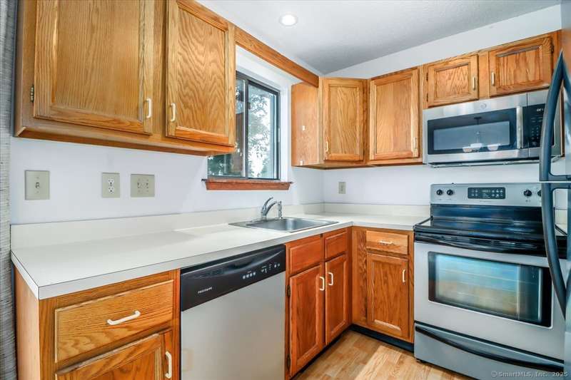 A lovely two-bedroom townhouse in Autumn Ridge. Located in the desirable Shelter Rock Road area, this home features an open floor plan allowing much natural light to flow through. The living room boasting a front deck accessed by sliders has a fireplace and opens to the Dining area which also has sliders onto a private rear deck. The kitchen is fully equipped and ready for some great gourmet meals to start. The upper level boasts two generous sized bedrooms and full bath with tile. The lower-level laundry room has an entrance to the outside and garage access which makes living here easy. Autumn Ridge is known for being a well-managed on. Start living a carefree life!