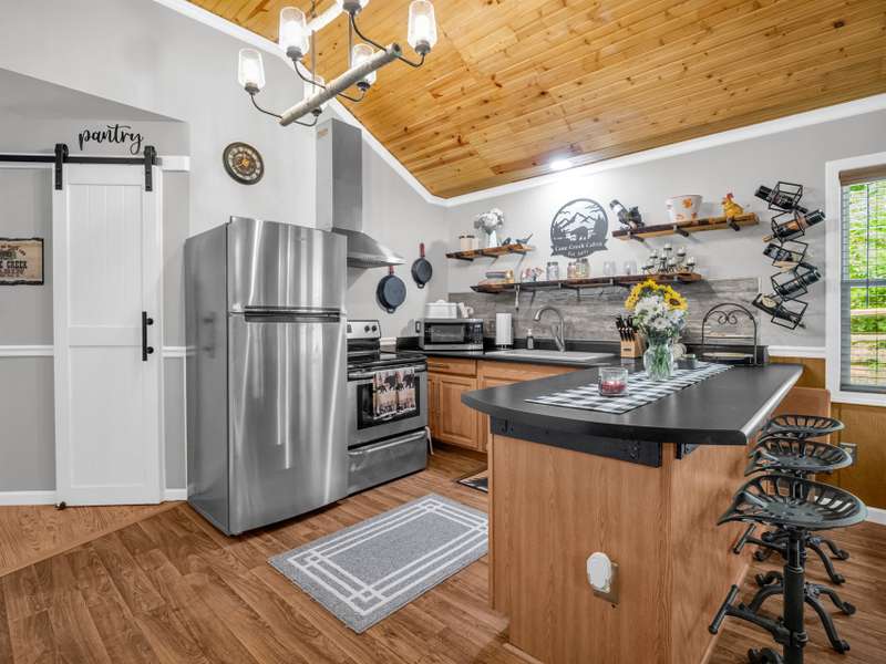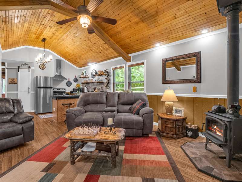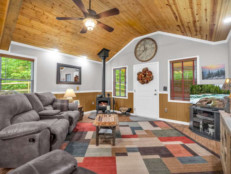 If you want privacy, low maintenance and close to town, this is it. This is an absolute immaculate 2BR 1BA custom built home with updated bathroom and kitchen. huge front deck and a covered porch on the end. Tractor shed and garage. See highlight sheet in MLS documents. Perfect starter home or week end get away with over 2 acres to play on. Short term rentals allowed. Enough firewood to last 4 seasons.