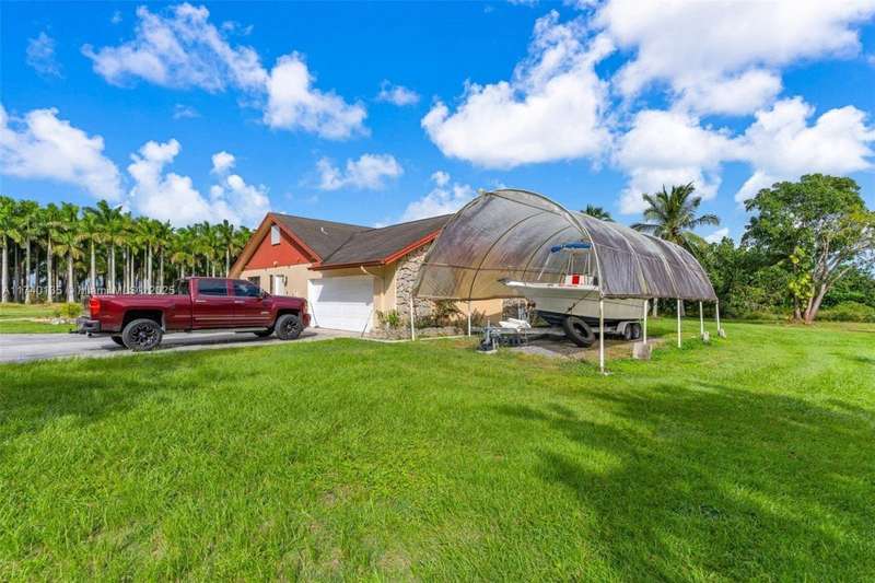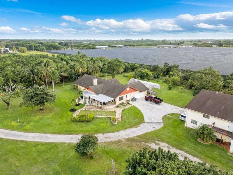 Almost 20 acre Agricultural Compound in South Miami-Dade featuring a 4800 sq. ft. hanger w/ new walk in cooler, sitting adjacent to Richards Air Field a private 2,000 ft run-way. The property also has a 4/2.5 House, A 1/1 apartment in hanger, assorted fruit & palm tree grove. The property is agriculturally exempt perfect for an agri-tourism business. There are multiple entrances, fully fenced, with driveway & access to landing strip. Situated in the heart of Redland, this is a one of a kind opportunity.