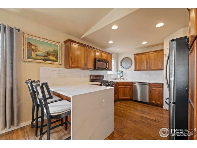 This exceptional home welcomes you with mature landscaping and exceptional curb appeal. This better-than-new home has been thoughtfully upgraded and meticulously maintained, offering true pride of ownership and peace of mind. Step through and you'll immediately notice the beautiful LVP flooring and the spacious, open floor plan. The kitchen has been enhanced with newer quartz waterfall countertops, matching backsplash. Dark wood cabinets and stainless-steel appliances, including a gas range, make this kitchen functional and stylish. Upstairs, the large primary suite features a walk-in closet and an updated bathroom with new sinks, faucets, and quartz countertops. Two additional spacious bedrooms and a full bathroom complete the upper level. On the lower level, you'll find a versatile bedroom with French doors, a bathroom, and a huge laundry space complete with a laundry chute. The basement-back-permitted by the current owners-includes an additional and relaxing living area. The home also boasts newer front and back doors, an active radon mitigation system, and a true 3-car tandem garage with plenty of side and overhead storage.The backyard features a dog run, included pergola, high-end motorized sunshade that retracts automatically in inclement weather, a storage shed, and beautifully finished stone pathways. A newer A/C unit adds to the home's comfort and efficiency. With no HOA and a metro district that maintains covenants, this property combines modern upgrades, thoughtful design, and everyday convenience. Buyer incentive from sellers of 1% of purchase price towards closing costs..