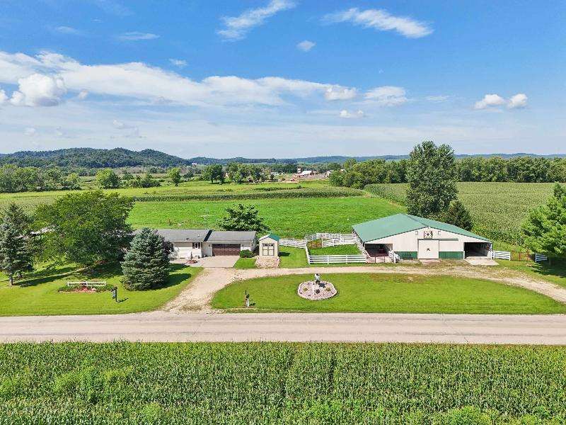 Giddy up! This home is pasture perfect! Offered for the first time ever, this lovingly cared for 5-acre farmette will have you reminiscing about Grandma's pies on the windowsill & the smell of freshly cut hay. Built in 1999, this ranch home offers 3-4 bedrooms w new carpet & LVP throughout. Spacious, sunny kitchen w dining area & large bay window. Enjoy a composite deck, cozy LL family room w gas stove, & handy garage-to-basement stairs for muddy boots after chores. Ideal for horses or other four legged friends, the 60x64 barn has 2 stalls & 5 pens w water, electric & concrete floor. A 44x40 shed stores equipment with ease. Approx 4 acres of pasture with line fence. Gorgeous views of both sunrise & sunset in Wi's driftless region, ideal location w proximity to Richland Center or Madison.