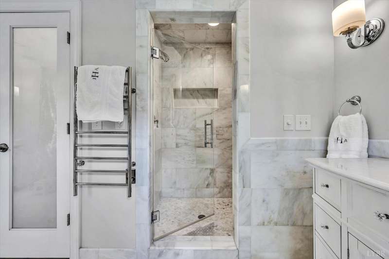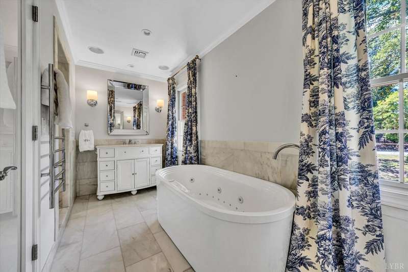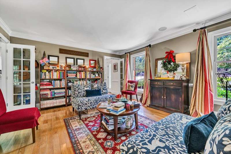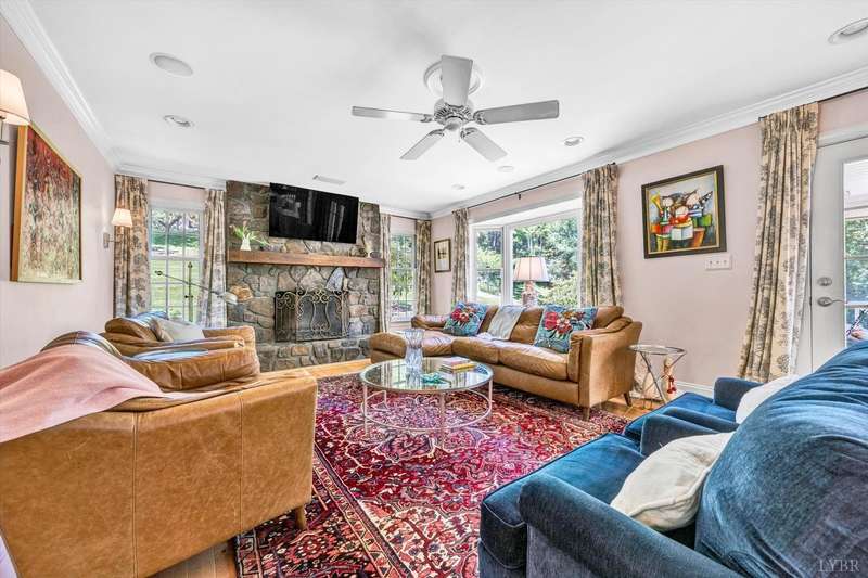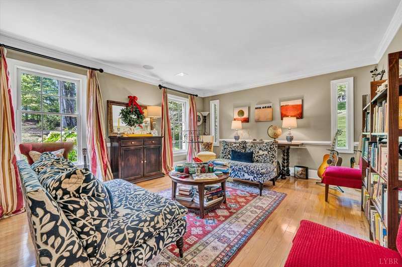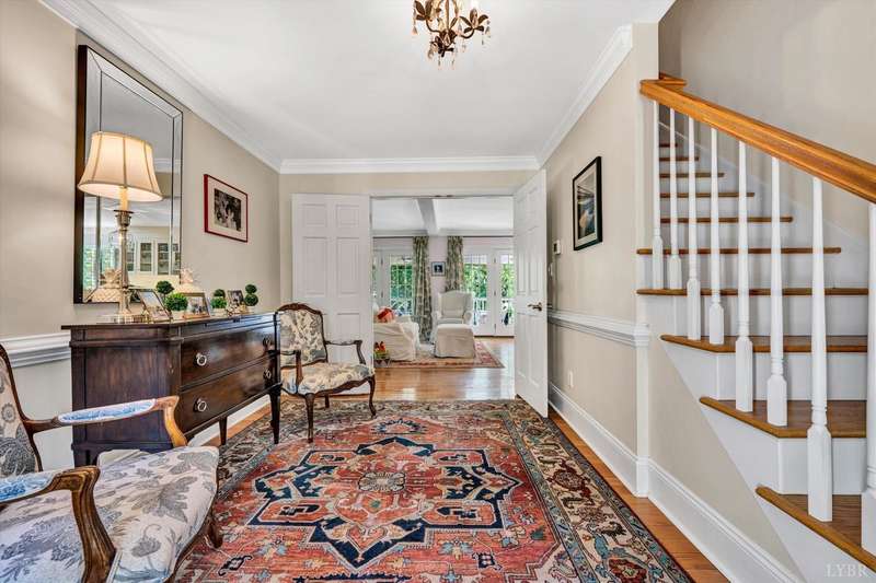 Refined Living Meets Timeless Design. This distinguished Georgian offers 4,600 sq ft of elegant living tucked on a quiet no-through street amid mature, professionally designed landscaping. Thoughtful updates enhance its enduring architecture with 6 bedrooms, 4.5 baths, and fabulous indoor/outdoor spaces. The crisp white kitchen opens to a sunlit family room with fireplace and flows through French doors to a skylit screened porch - an inviting retreat for both relaxing and entertaining. A dream mudroom/laundry with cabinetry, second refrigerator, and garage access adds convenience. The primary suite features marble shower, jetted tub, dual vanities, heated towel racks, and custom walk-in closet. Additional bedrooms with built-ins and cedar closets plus a terrace level with rec room, fireplace, guest suite, and fitness area offer versatility. Updates include HVAC (2020/2024), roof (2011), surround sound, and invisible fence - all in a premier Lynchburg location.