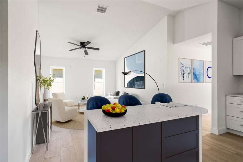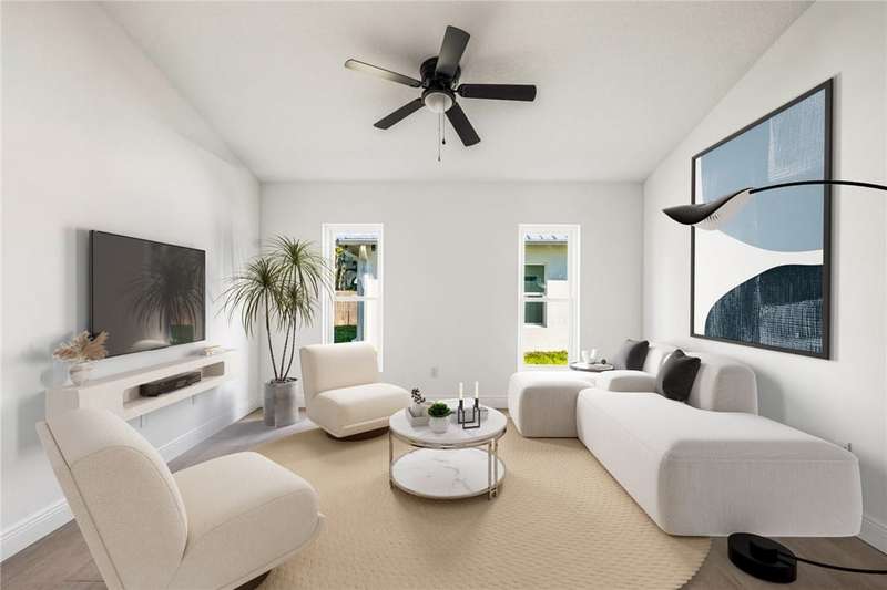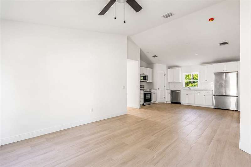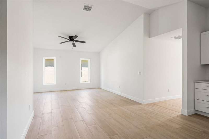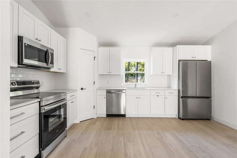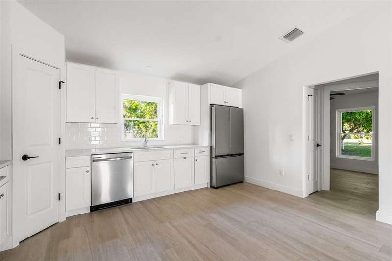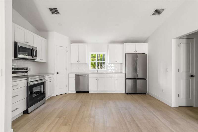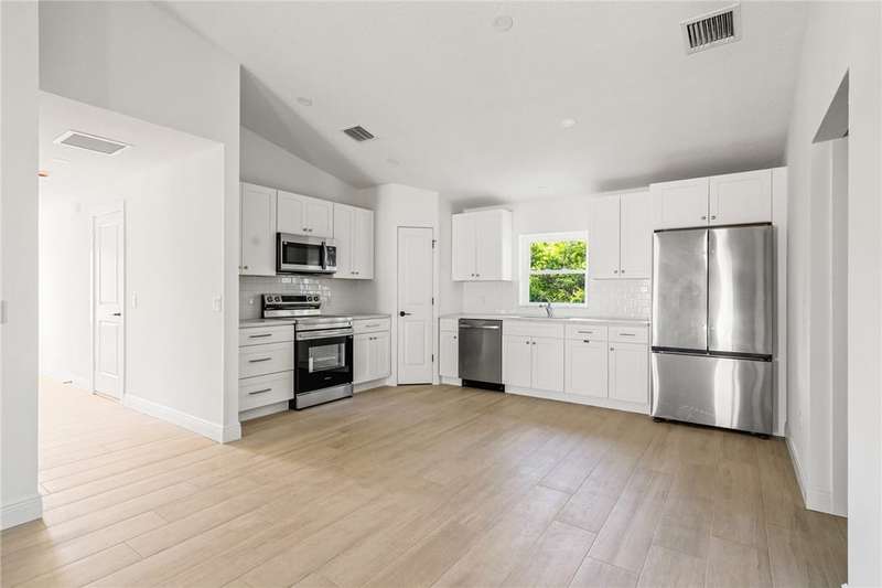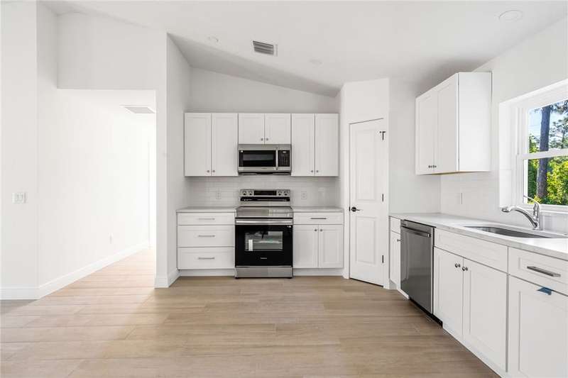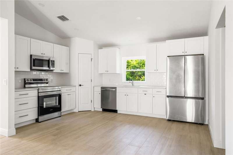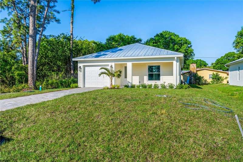 NEW CONSTRUCTION! JUST FINISHED! 2025, NO HOA, 3/2 cbk, metal roof, impact windows, coastal white cabinets, tile flooring, quartz countertops, 1 car garage & 1 year Builders Warranty! Steps to school, short drive to tons of shopping!! Sizes are approx/subj to error.