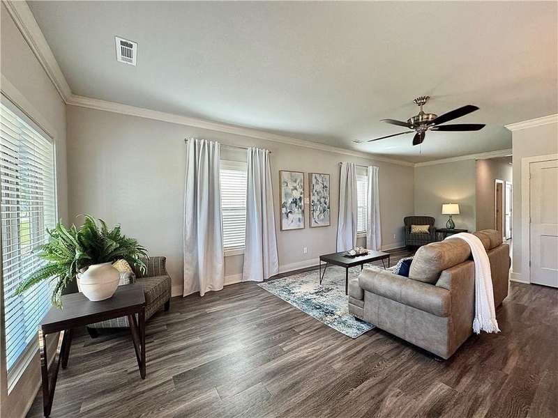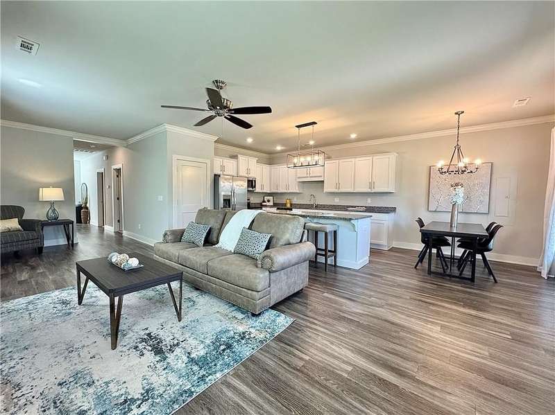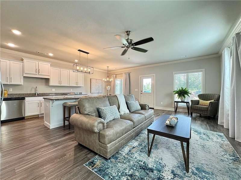 5.49% INTEREST RATE/BUY DOWN! Unbeatable location near Crystal Bridges Museum, the Alice Walton School of Medicine, Downtown Bentonville & Walmart’s new campus. Enjoy a vibrant community with top-tier amenities, including a clubhouse, pool, pickleball court, dog park, yard maintenance & access to the countries top premier mountain biking trails. Staged home! Faulkner floor plan boasts LVP flooring, crown molding, blinds, ample storage & quality throughout. The living room & dining area offer a seamless open floor plan, perfect for entertaining, with abundant natural light & smooth flow into the chef’s kitchen. Chef’s kitchen features 3cm granite countertops, Frigidaire stainless steel appliances, refrigerator, a pantry, tons of storage & abundant natural light. Spacious primary suite includes a perfect ensuite bathroom with walk-in tile shower, double sinks, & large walk-in closet. Patio perfect for entertaining! Oversized garage with ample storage.