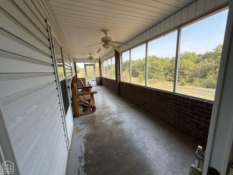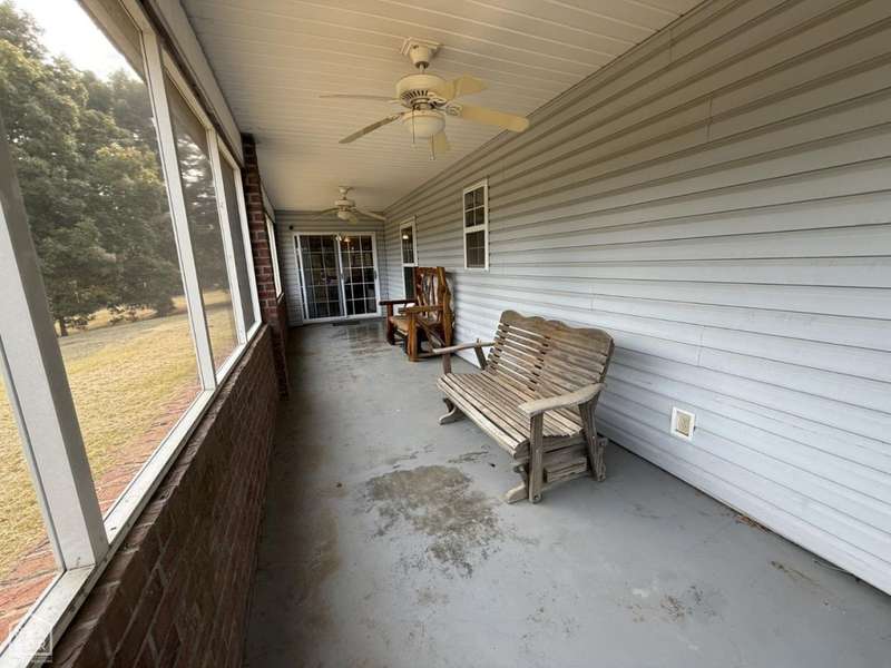 This all brick, all-electric country home sits on 2.86 acres that is fully fenced. There is a large RV pad with electric and water connections, along with an oversized 2 car garage for parking and storage. A storm shelter is also on the property for your safety. A new roof was installed in June 2025. Inside the home are 3 bedrooms, 2 baths, a master bedroom with an ensuite bath, a living room which can comfortably accommodate several guests. The kitchen is equipped with a flattop stove, built-in dishwasher, and refrigerator. The refrigerator was purchased in 2024. From the kitchen table there is a great view of this natural setting. The utility/laundry room is adjacent to the kitchen and offers extra space for storage. The hot water heater was purchased in 2024. The large screened-in back porch is off the kitchen and offers an area to be even more immersed with the sights and sounds of nature with a breath of fresh country air. This long space could easily be enclosed to become a sunroom. Come and see this property. You will be glad you did!