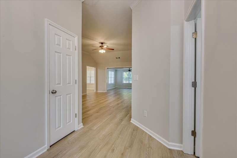 Welcome to this stunning 2-bedroom, 2-bath townhome in the highly desirable Village at Riverview, where upscale finishes, walkability, and low-maintenance living come together beautifully. Perfectly positioned just steps from the North Augusta Greenway and minutes from downtown shopping, dining, and entertainment, this home offers the lifestyle today's buyers are searching for. Inside, no detail has been overlooked. Enjoy brand-new luxury vinyl plank flooring throughout, fresh paint from top to bottom (including the garage), and all new lighting for a modern look. The spacious, reimagined floor plan now features a fully enclosed sunroom—one of the few units in the community with this rare upgrade—connected to the dining area via a custom wall opening that enhances flow and natural light. The kitchen is a true showstopper, boasting leathered granite countertops, a stylish tile backsplash, all-new stainless steel appliances, a deep undermount sink, and an oversized walk-in pantry with custom wood shelving. Both bathrooms have been updated with new vanities, and the primary suite offers a peaceful retreat with a barn door entry to the en-suite bath. Step outside to a covered back patio overlooking a landscaped yard—perfect for morning coffee or relaxed evenings. Additional upgrades include recently replaced windows and a laundry room equipped with washer and dryer. Enjoy the ease of low-maintenance living with an HOA that covers lawn care, termite protection, and routine pressure washing of your home and driveway. Whether you're relocating or downsizing, this move-in ready townhome offers style, convenience, and unbeatable access to everything North Augusta has to offer. Homes in Village at Riverview rarely come available—schedule your private tour today!