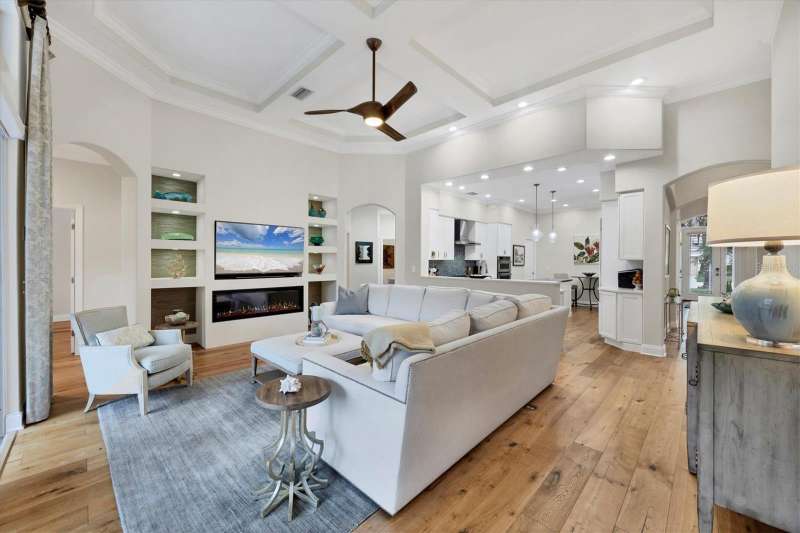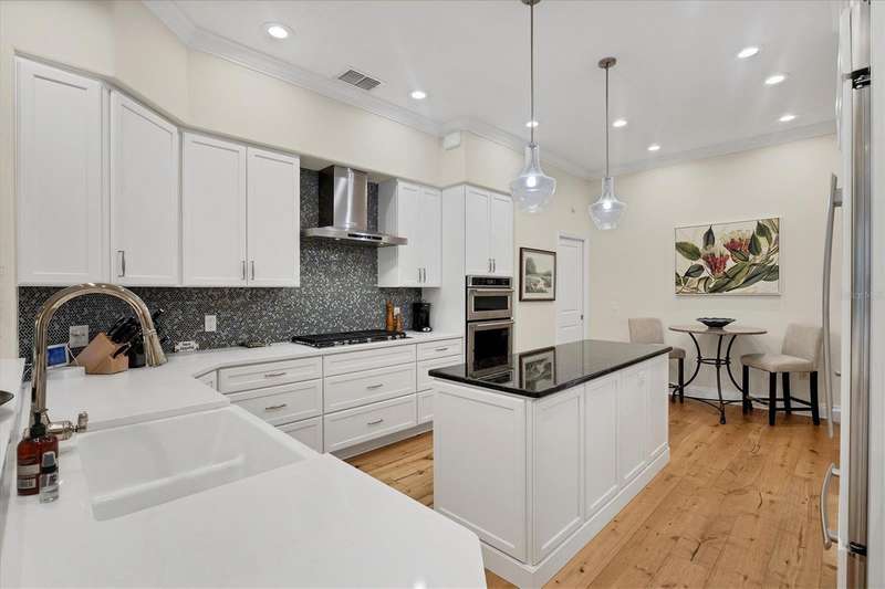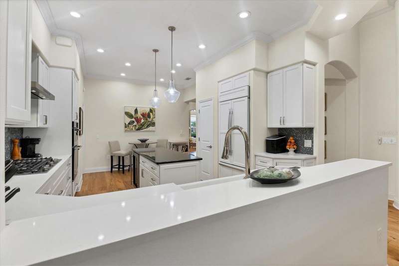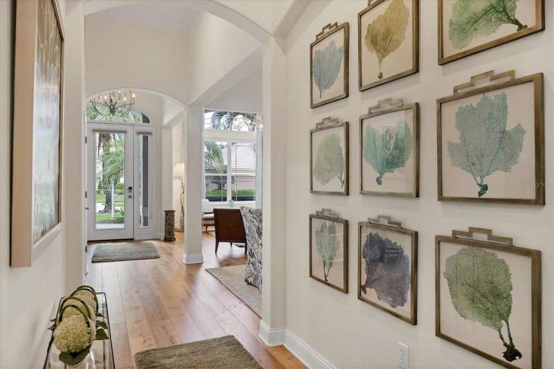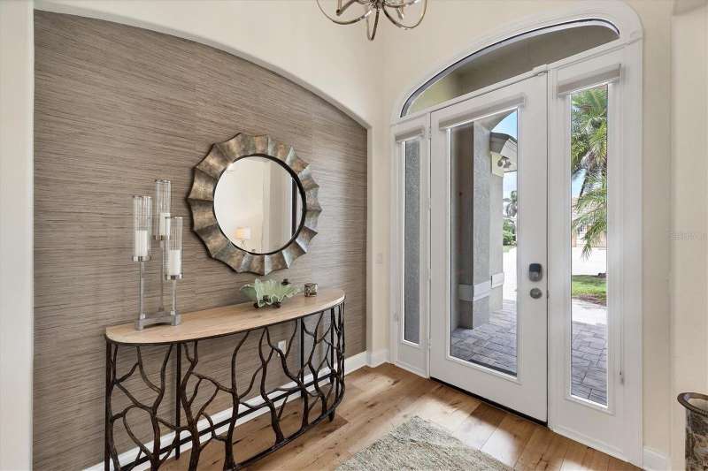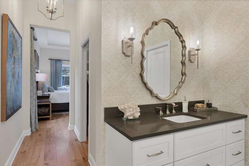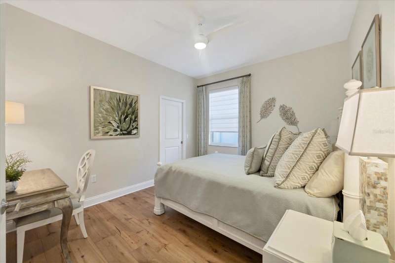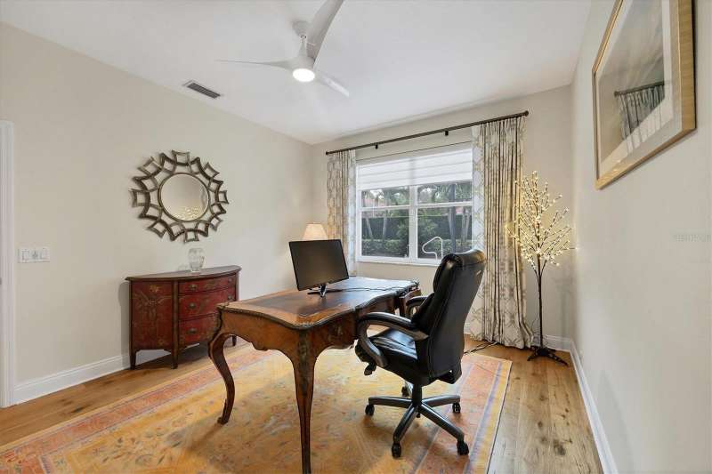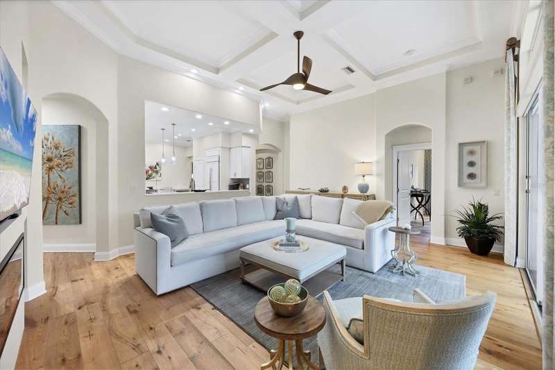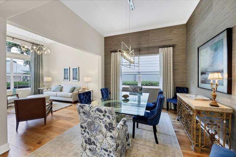 Absolutely Impeccable Designer Home in Edgewater Village! Step into this exquisite four-bedroom, three-bath residence, where every detail exudes sophistication. Featuring European French Oak flooring, custom window treatments, designer finishes and natural light throughout, this home offers both elegance and comfort. The chef’s kitchen offers an all-white cabinetry design, a modern gas cooktop, convenient beverage center, custom panel refrigerator - all with a spacious layout and perfect for cooking and gatherings. Designed for entertaining, this home boasts a large lanai with a sparkling pool, relaxing hot tub, fireplace and a panoramic pool cage for unobstructed views and privacy. The executive primary retreat is a sanctuary with a custom walk-in closet, intricate ceiling details, and a luxuriously appointed primary bath. With an ideal split floor plan, the three additional bedrooms and baths are equally well-appointed and complete with designer wall coverings and window treatments. In addition, you will have complete peace of mind with a Brand-new Generac full house generator! Adding all this to an immaculate three-car garage with built in cabinets and workspace. Located within the gated community of Edgewater Village, residents enjoy a LOW HOA FEE and are just a short walk away from dinner and a movie in downtown Lakewood Ranch! An exceptional property in all categories! Interior furnishings are available for purchase as a package, making this home move in ready!