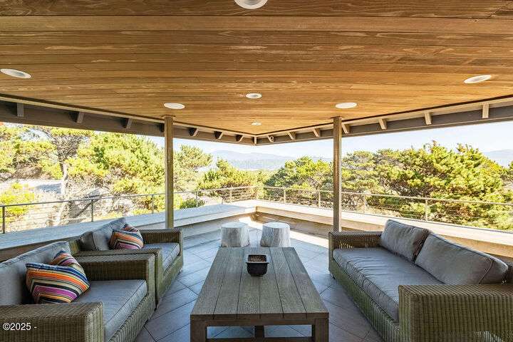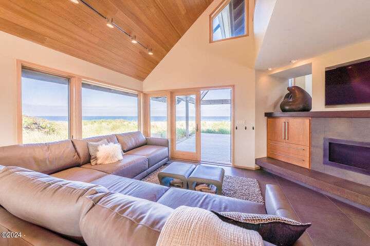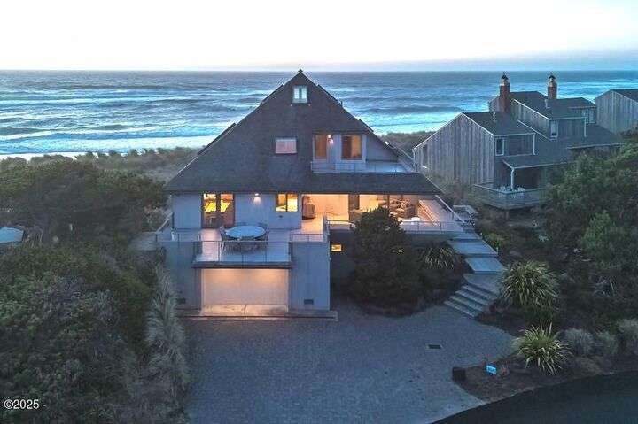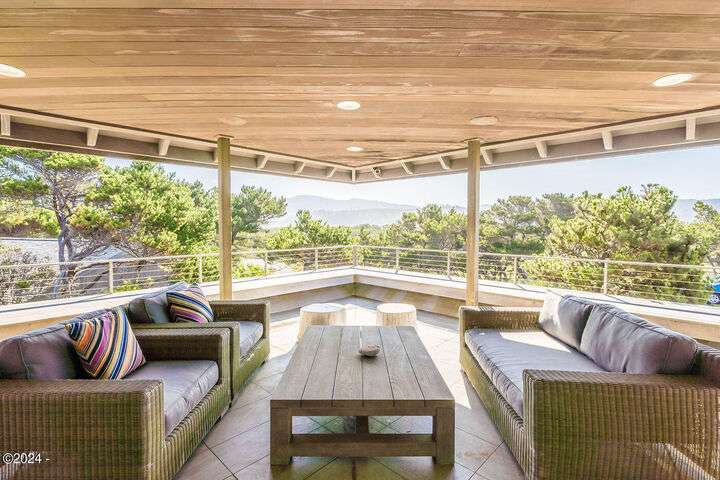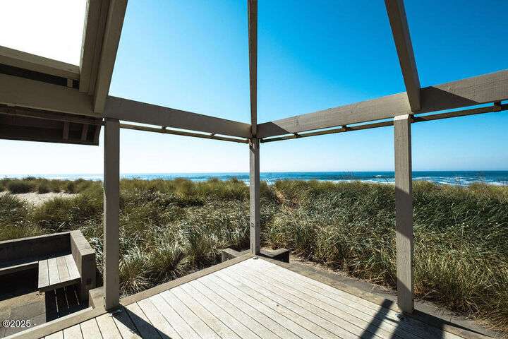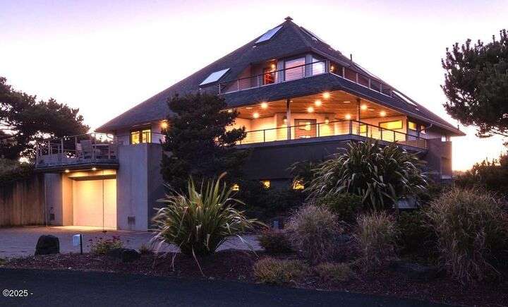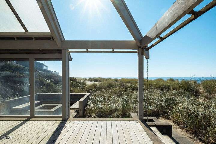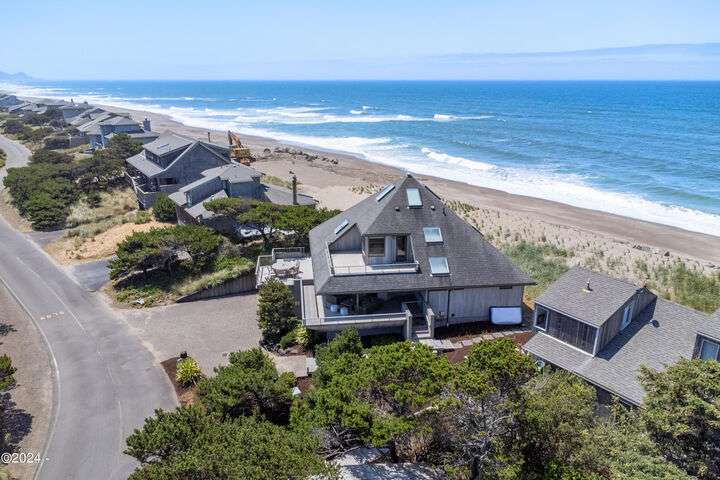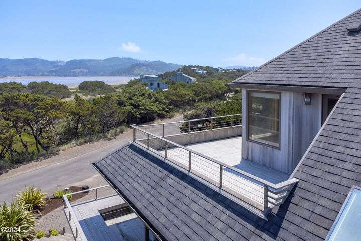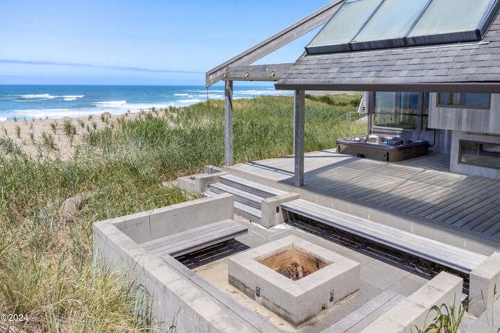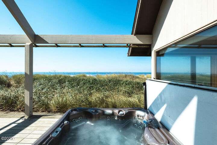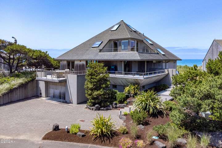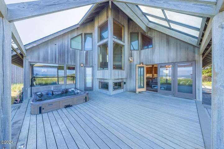Ocean Spectacular beautifully remodeled blending superb Architecturewith sweeping panoramic ocean & bay views from every window, deck and living space. A modern indoor / outdoor designed floor plan that features wonderful spaces for the whole family & guests. Unique pole staircase as focal point as you enter, lower family room w/ 2nd utility area for all your hobbies! Upper level has the crows nest w/ panoramic views for miles. You can relax year round on the oceanfront deck with large protective panels that slide open or close. Amenities include both patio & deck with hot tub & fire pit. The finest features and building products used in this home including appliances, cabinetry, carpeting, tile, & woodwork detail throughout.