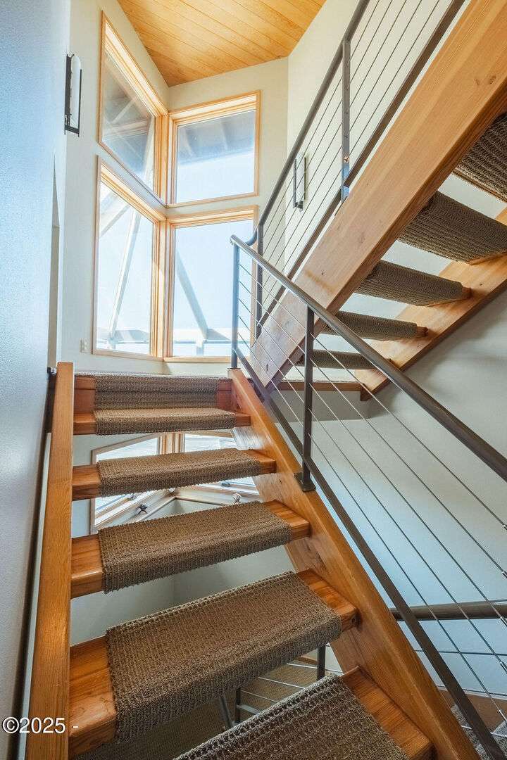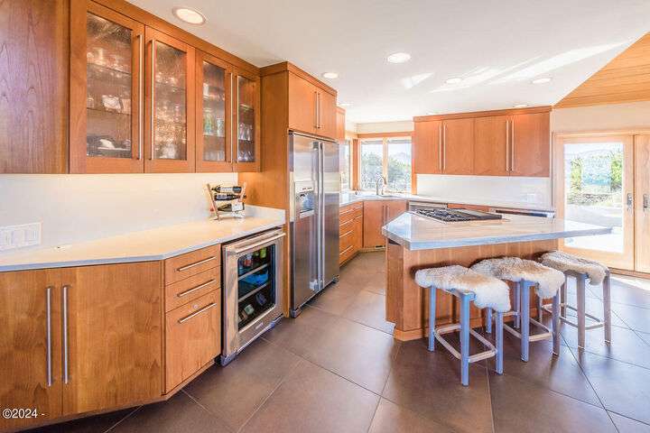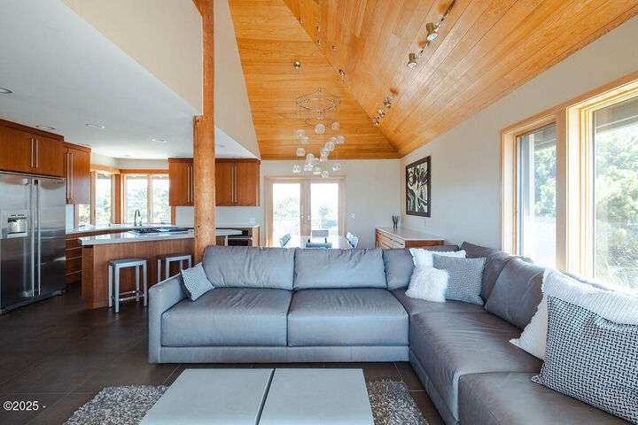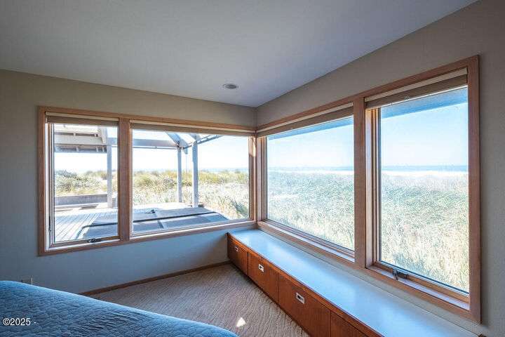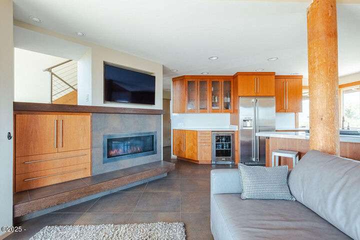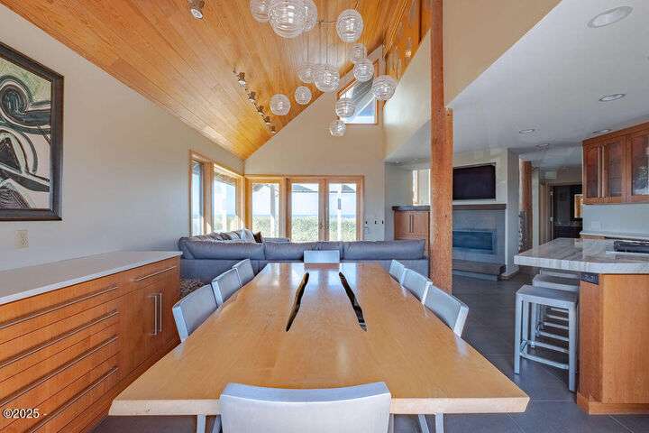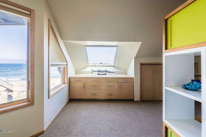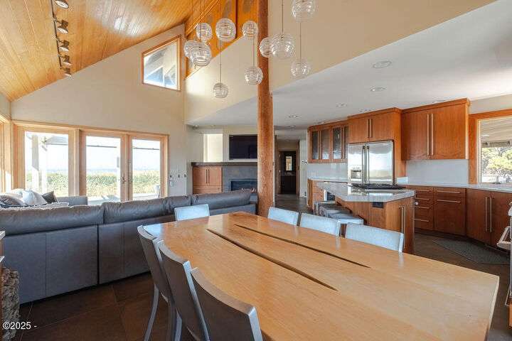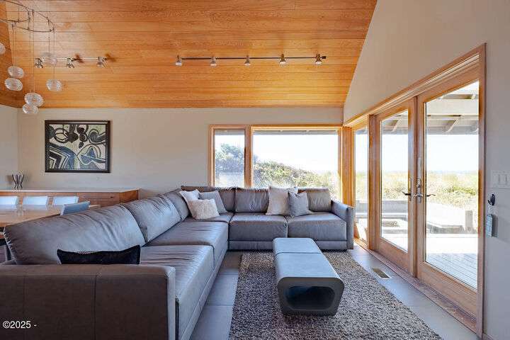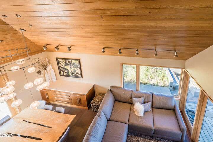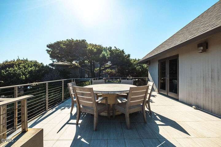 Ocean Spectacular beautifully remodeled blending superb Architecturewith sweeping panoramic ocean & bay views from every window, deck and living space. A modern indoor / outdoor designed floor plan that features wonderful spaces for the whole family & guests. Unique pole staircase as focal point as you enter, lower family room w/ 2nd utility area for all your hobbies! Upper level has the crows nest w/ panoramic views for miles. You can relax year round on the oceanfront deck with large protective panels that slide open or close. Amenities include both patio & deck with hot tub & fire pit. The finest features and building products used in this home including appliances, cabinetry, carpeting, tile, & woodwork detail throughout.