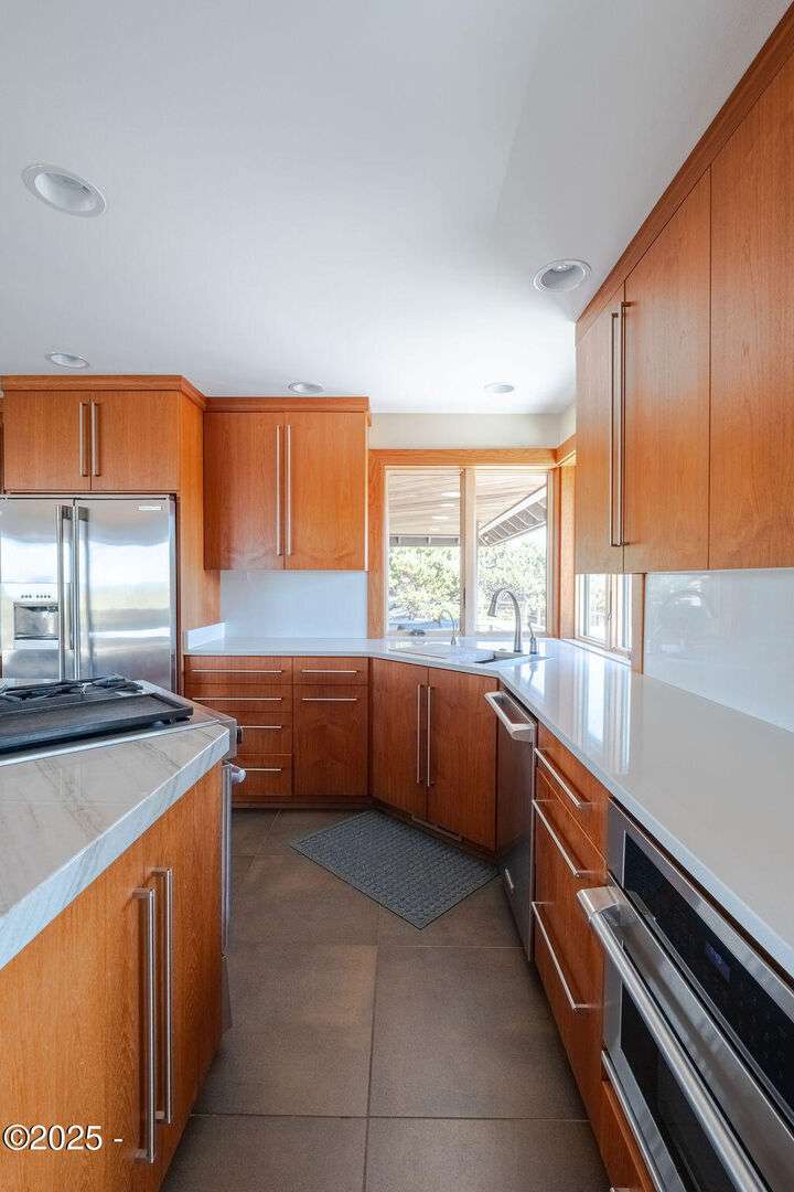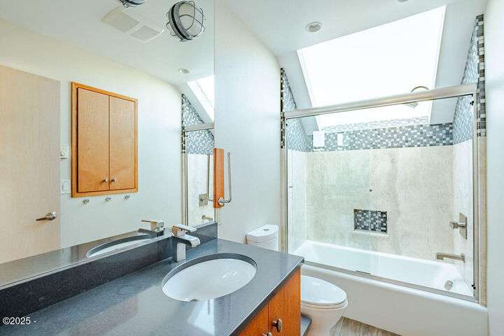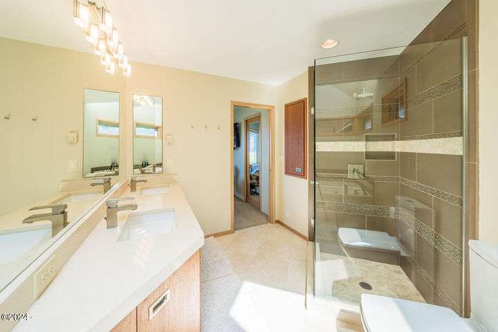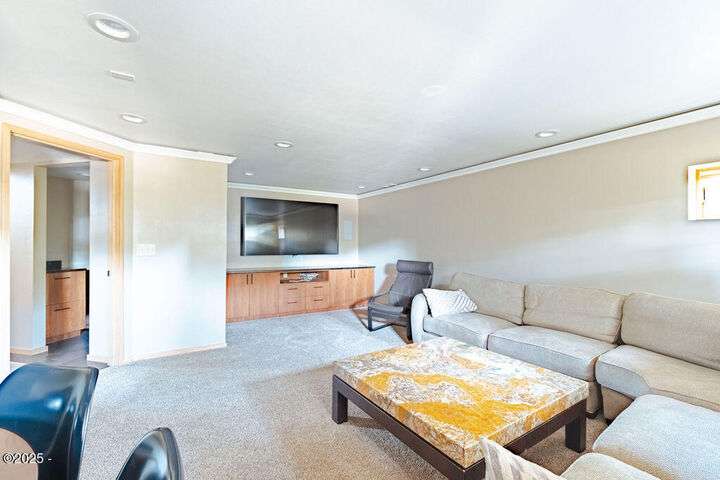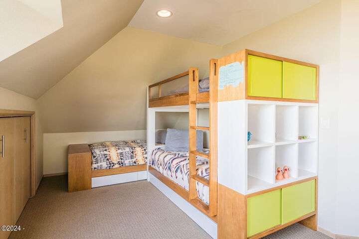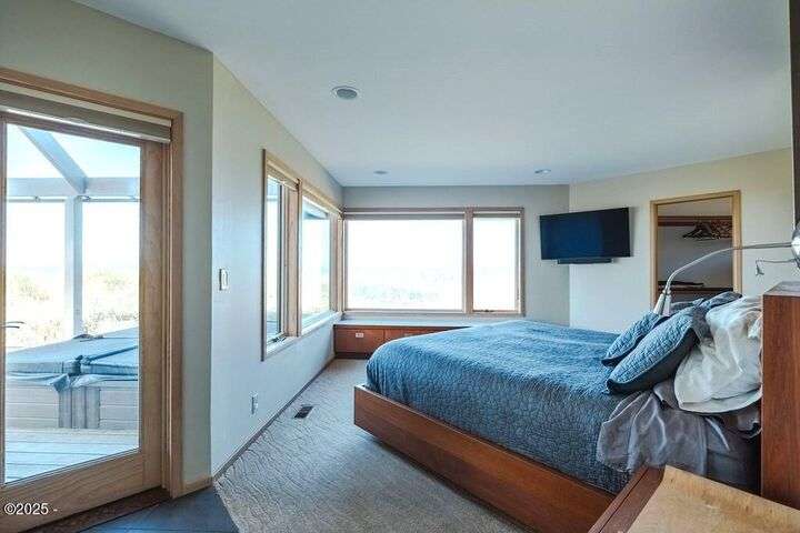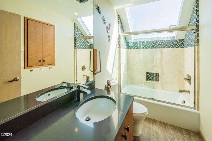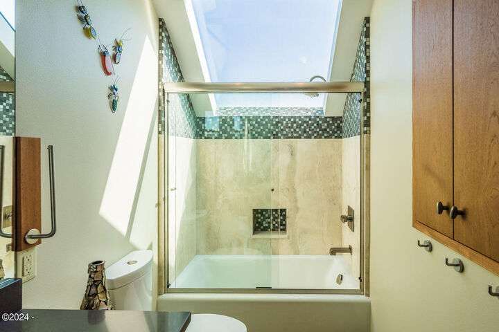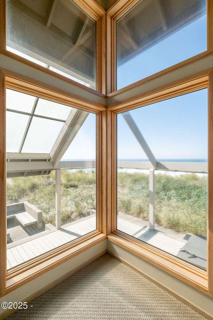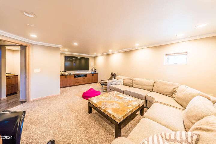Ocean Spectacular beautifully remodeled blending superb Architecturewith sweeping panoramic ocean & bay views from every window, deck and living space. A modern indoor / outdoor designed floor plan that features wonderful spaces for the whole family & guests. Unique pole staircase as focal point as you enter, lower family room w/ 2nd utility area for all your hobbies! Upper level has the crows nest w/ panoramic views for miles. You can relax year round on the oceanfront deck with large protective panels that slide open or close. Amenities include both patio & deck with hot tub & fire pit. The finest features and building products used in this home including appliances, cabinetry, carpeting, tile, & woodwork detail throughout.
