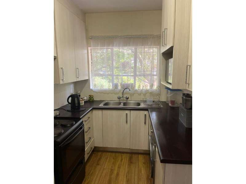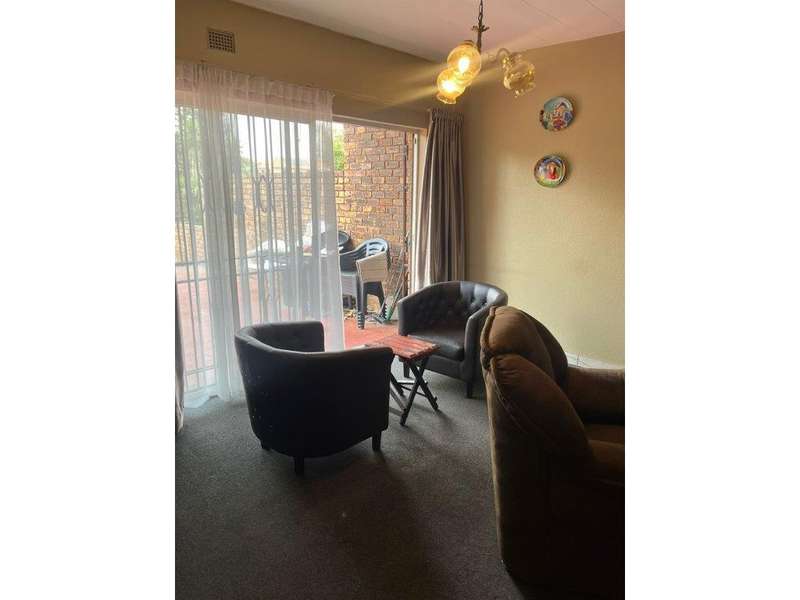 LOVELY UPSTAIRS TOWNHOUSE WHICH OFFERS PLENTY OF SPACE This home offers you the following: 3 Spacious bedrooms all with built-in cupboards, third bedroom can be converted into a sun room or office. 2 Bathrooms, first bathroom with a bath, basin & loo : second bathroom with shower, basin & loo. Open plan living area with sliding door opening up on to a very large entertainment patio where you can cater for a family get-together or a party. Lovely compact kitchen with melamine counter tops, free standing stove and plenty cupboards, space also for washing machine and fridge. Under ground parking for one vehicle plus one extra outside parking. New geyser and fibre available.