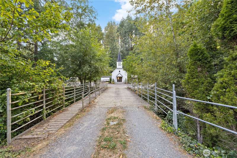 Cross the bridge to the beloved church most recently known as The White Chapel Farm. Spread across 5 tax parcels, the sellers have poured heart & soul into restoring this treasure—complete w/new foundation, updated electrical, ductless mini split system, original stained glass, gorgeous millwork & the original organ & bell still intact. Includes parking & a serene level meadow along the creek. R-2 zoning allows medium density residential: single family homes (min 5,000SF lots) or duplexes (min 8,400SF lots) potential for 8 homesites or 5 duplexes per buildable acre. Sellers had plans to convert the church to a single home. Option to operate under special use—past uses include weddings, holiday events & camping. Listed below recent appraisal