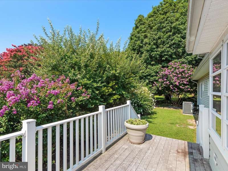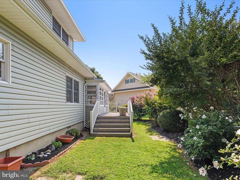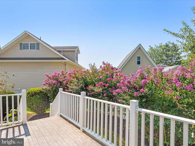 Welcome to this classically styled, beautifully landscaped home in the sought-after community of Whites Creek Manor. Nestled among mature trees and flowering bushes, this charming residence offers a sense of peace and privacy, all while being just minutes from Bethany Beach, Fenwick Island, and Ocean City. With three picturesque dormers and a spacious two-car side-entry garage, the home's curb appeal is timeless. The front yard is expansive and well-kept, while the backyard offers a lower-maintenance sanctuary with lush landscaping and seasonal blooms. Step inside to a warm and inviting foyer featuring wood flooring and a handsome wood staircase that leads to the upper level. Just off the entry is the cozy carpeted living room, which flows seamlessly into the bright dining area and kitchen. The kitchen features a stainless steel refrigerator, white appliances, a pantry, and a double sink positioned beneath a sunny window offering views of the vibrant flowering trees just beyond. Adjacent to the dining area, the screened porch enclosed with casement windows serves as a comfortable three-season room that opens to a rear deck. This outdoor space is a serene retreat, perfect for enjoying your morning coffee or entertaining guests while surrounded by nature's beauty. The spacious primary bedroom is conveniently located on the main level and includes an en suite bath. A powder room and laundry closet are also on the first floor for added functionality. Upstairs, you'll find two generously sized bedrooms and a full bath with a walk-in shower. Above the garage is a large unfinished space with flooring, offering excellent storage or the potential to be transformed into a bonus room, office, or hobby area. Whites Creek Manor is a well-established neighborhood offering a variety of architectural styles and exceptional amenities, including a community pool, tennis and pickleball courts, and access to a boat ramp for water enthusiasts. The boat ramp is owned by the Marina, which operates separately from the community; however, homeowners have the option to pay a fee to use the ramp and may also rent or purchase boat slips. The way this home is positioned provides an added sense of space and privacy, with generous setbacks from neighboring properties. Whether you're looking for a full-time residence or a coastal retreat, this home offers both charm and convenience in one of the area's most desirable communities. The rear deck is the perfect place to unwind, surrounded by your own private flower-filled sanctuary.