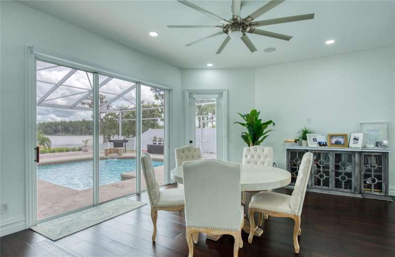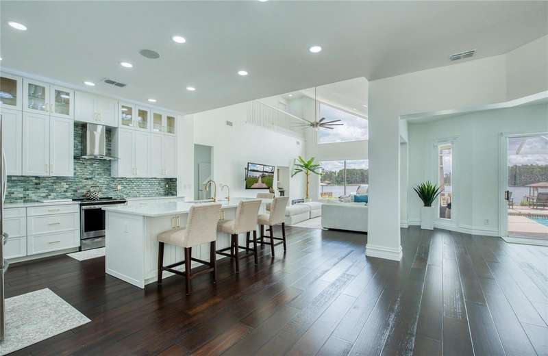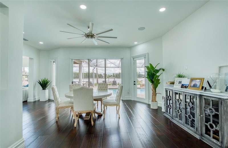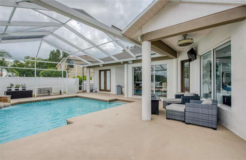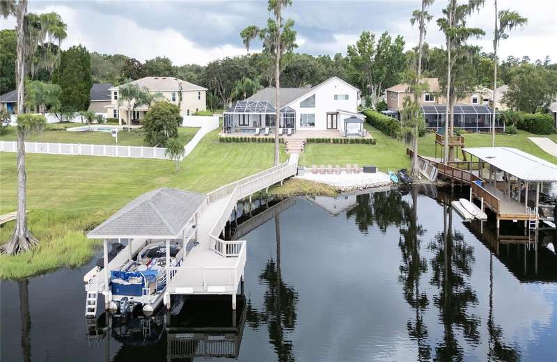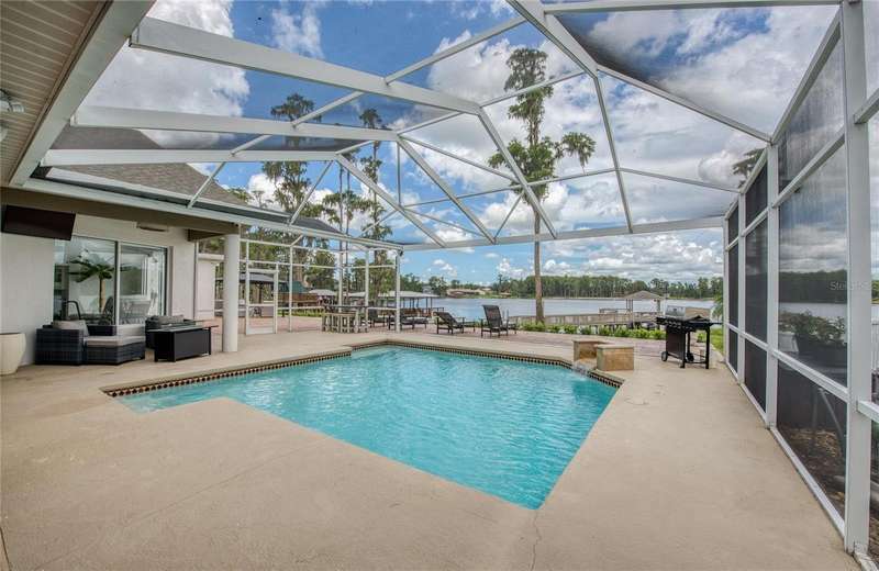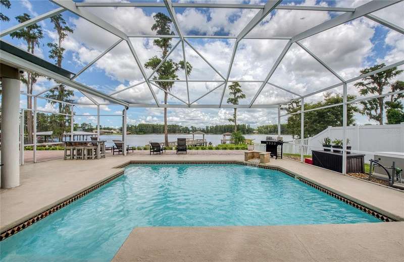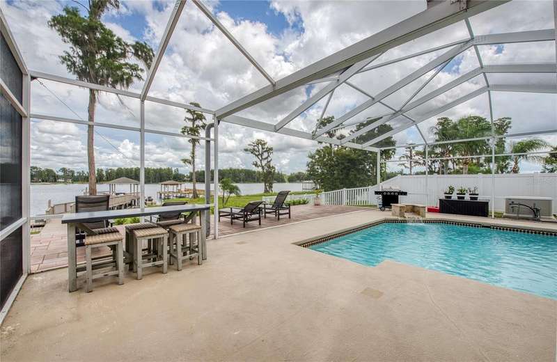 Odessa Lakeside Retreat Featuring Oversized Bedrooms, Modern Kitchen, and Expansive Outdoor Living! Welcome to lakeside living at its finest on the shores of Lake Ann, a pristine 97-acre ski lake in Odessa’s desirable Wyndham Lakes community. This elegant 4-bedroom, 3-bath ranch-style home spans 3,138 sqft. and sits on nearly an acre of property, offering both space and serenity. From boating and wakeboarding to poolside relaxation, this property blends luxury with adventure. Step inside to find vaulted ceilings that enhance the open design and flood the home with natural light. Oversized bedrooms with large closets provide comfort, while expansive picture windows showcase sweeping views of the lake. Thoughtful upgrades throughout the home include updated fixtures, hardwood floors (2023), updated drywall finishes in the main living areas (2023), a central vacuum system, motorized window shades, and even a dedicated movie screen with projector in one of the rooms—perfect for quiet evenings. The kitchen, updated in 2023, shines with stainless steel appliances and modern finishes. Bathrooms were refreshed in 2021, along with new tile, a roof replacement (2021), new gutter and leaf guards (2024), and a re-screened lanai (2021). A Generac generator (2023) and gas tankless water heater (2023) add peace of mind during the Florida storm season. Outside, in the front of the home there is a five car paver driveway (2023) that was permitted and approved by the HOA, and in the backyard the screened lanai and heated pool invite year-round enjoyment. The freshly painted dock extends into Lake Ann, ready for fishing, kayaking, skiing, and sunset cruises. An Astroturf dog run and private sandy beach area add unique touches to the backyard retreat. Located minutes from shopping, dining, The scenic 272-acre Lake Rogers Nature Park, and just 14 miles from Tampa International Airport, this property is the ideal balance of tranquility and convenience. Don’t miss your chance to own this Lake Ann retreat—schedule your private showing today!