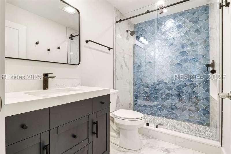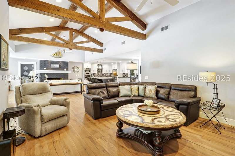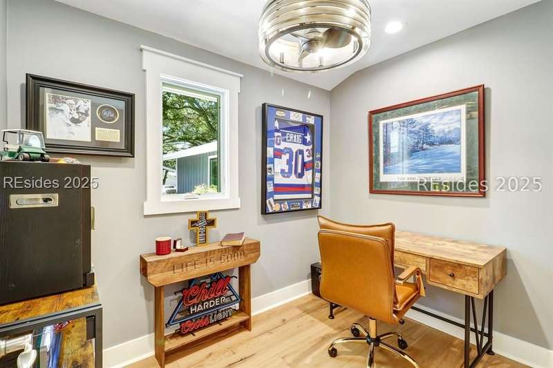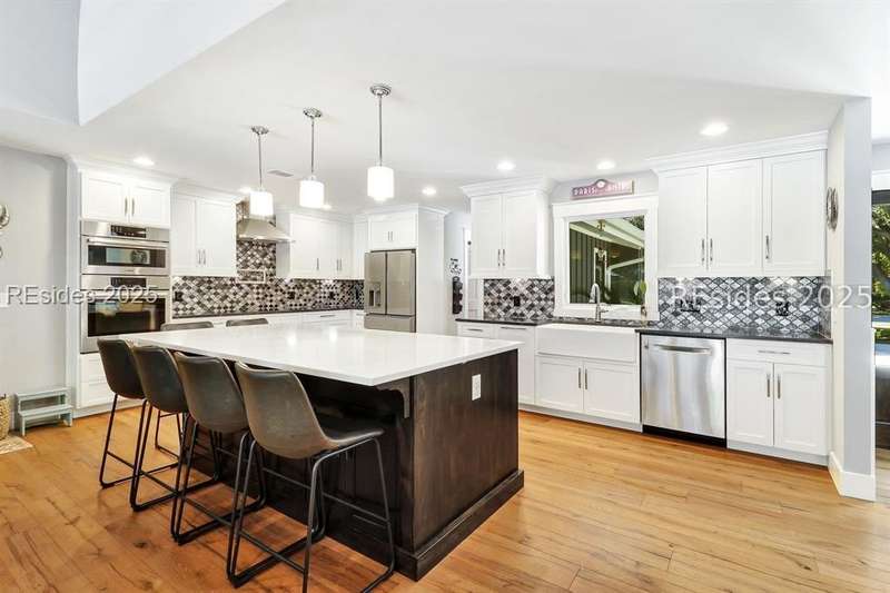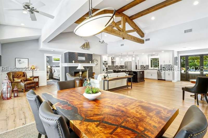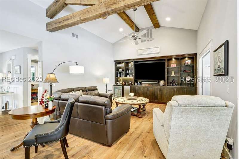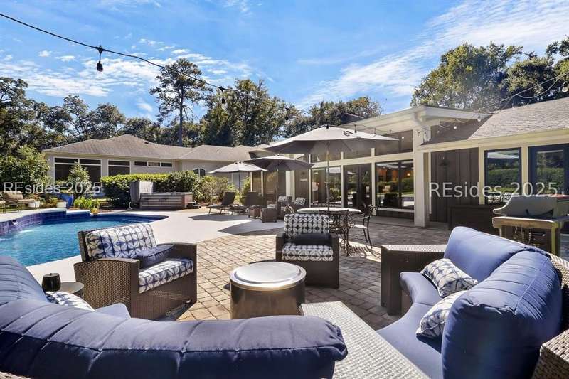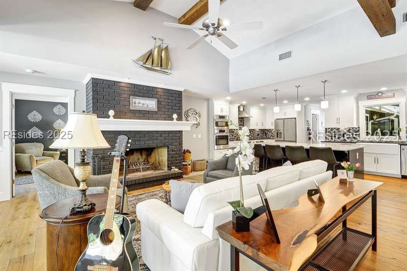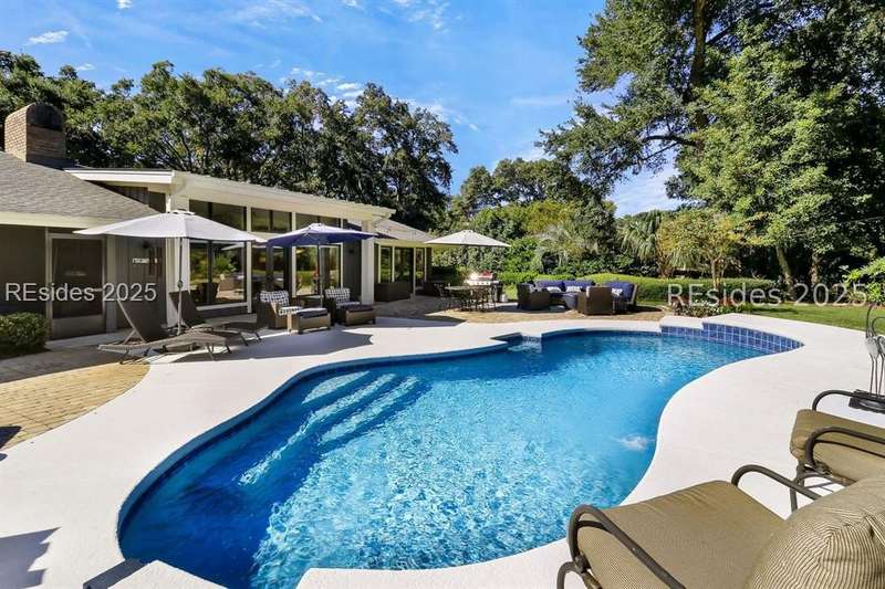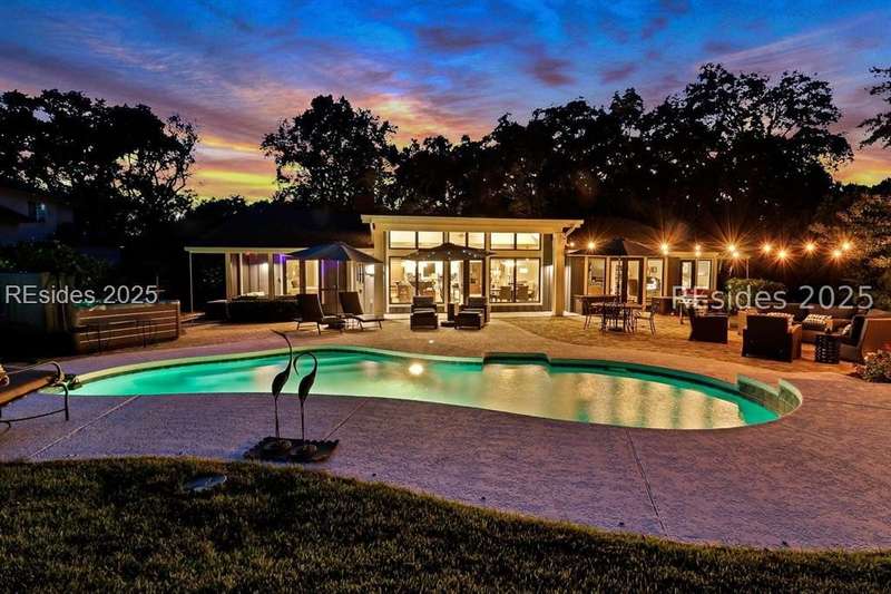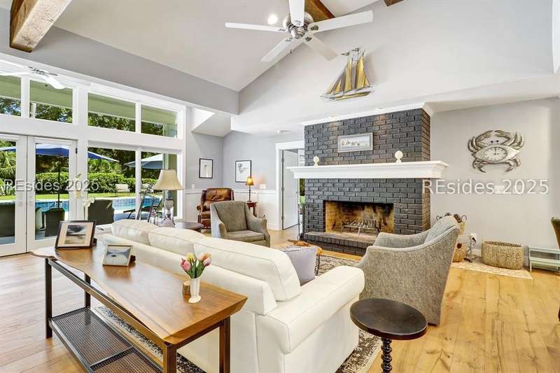 Island living at its best! This stunning, single-story Port Royal home has been completely remodeled & expanded, blending coastal ease w/ modern luxury. The open layout is designed for gathering from the gourmet kitchen w/ expanded center island, seating for 6, walk-in pantry, to the inviting living, dining & media spaces w/ fireplace, built-ins & beverage center. Walls of windows frame the paved patio, private pool, hot tub & lush landscaping along the golf course. The primary suite is a serene retreat w/ screen porch, soaking tub & steam shower, while 3 guest BRs are set apart for privacy. With 2 offices, climate-controlled storage, & an oversized 2-car garage w/ epoxy floors, this 3,400 sq. ft. home offers the perfect balance of lifestyle, comfort & function. Owners enjoy beach access, pool, tennis/pickleball, beach house, playground, leisure trails, security & more all w/ the peace of no short-term rentals.