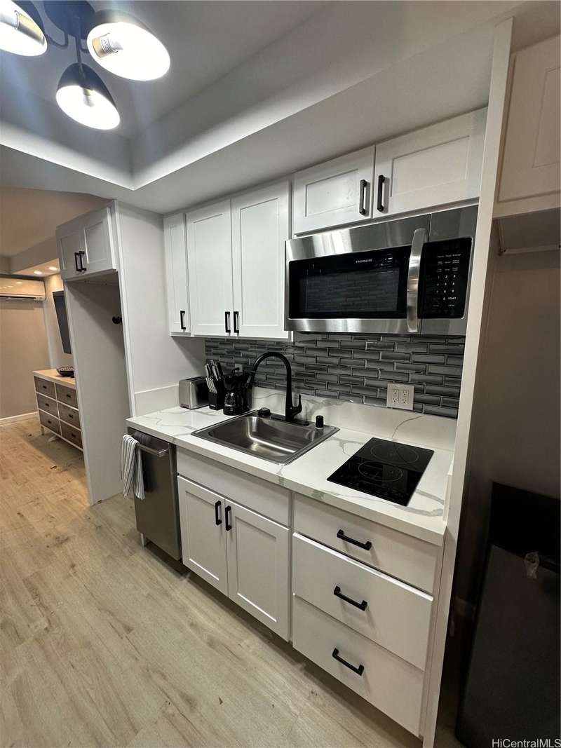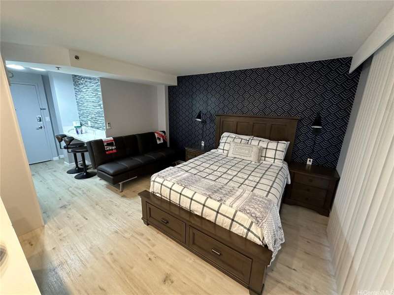 Step into island living with this updated, fully turn-key residence in the vibrant heart of Waikiki. The location of this property is exceptional in the heart of Honolulu, Waikiki. The kitchenette, bathroom, and living area have been beautifully reimagined - featuring beautiful appliances, sleek shaker cabinets, and stunning quartz countertops. Luxury vinyl plank flooring adds both style and durability, while a custom feature wall ties the design together seamlessly. This unit isn't just move-in ready - it's designed for enjoying the beauty of paradise. Furniture can be included with consideration to offers, making this an effortless transition into your new home or investment. Enjoy the very best of island living, with Waikiki Beach, Ala Moana Shopping Center, world-class dining, and entertainment just minutes away. Whether you're seeking a tranquil retreat or a high-value investment opportunity, this property is ready to exceed your expectations. Offers flexibility for those seeking rental income or a place to call home.