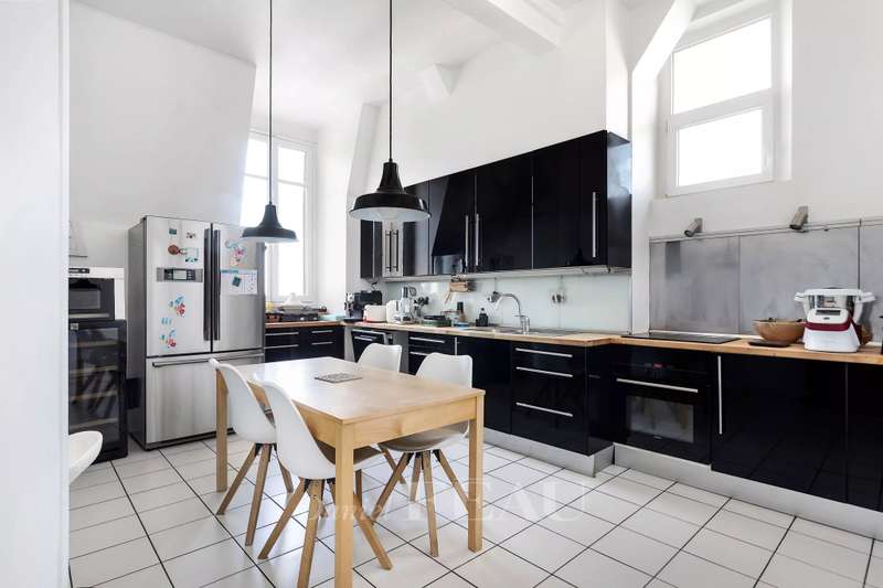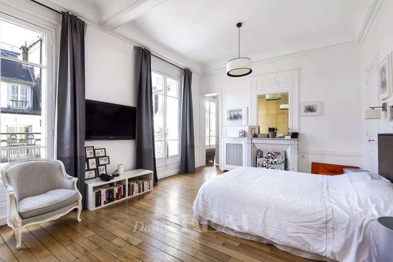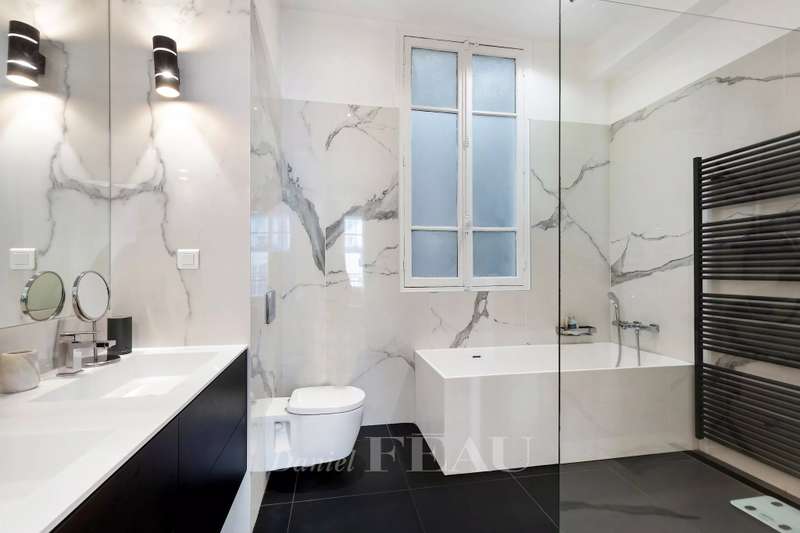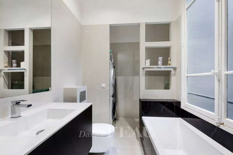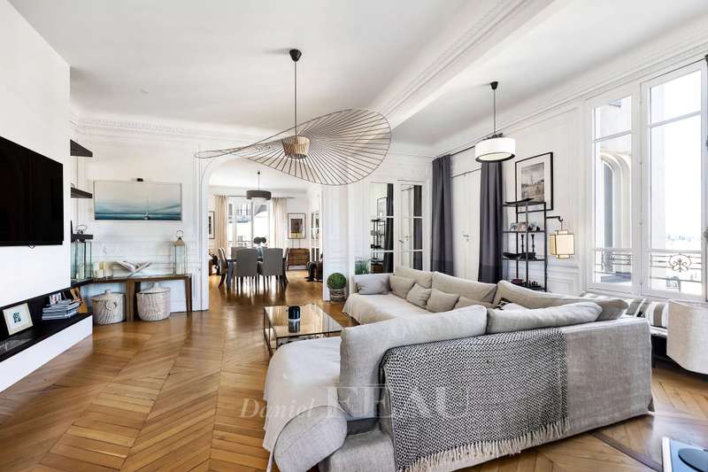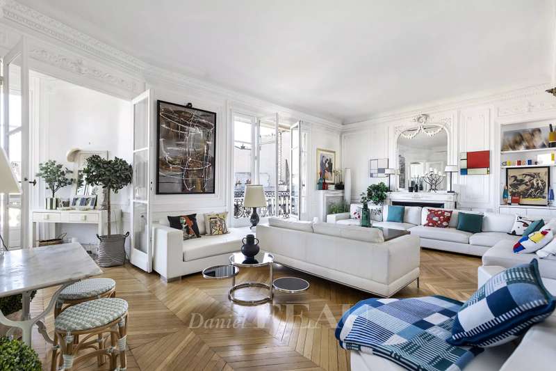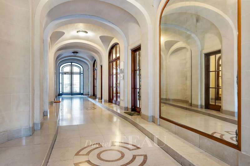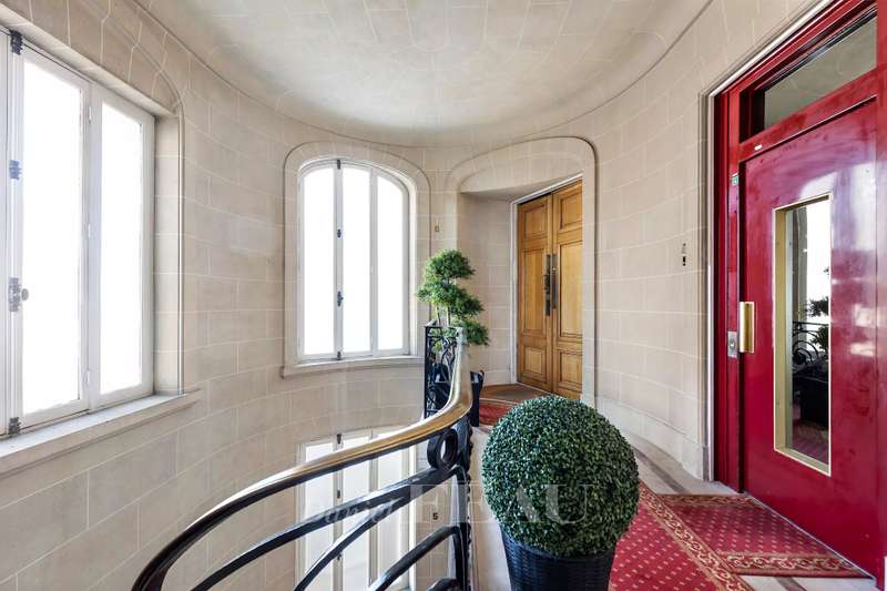 Sole Agent. Etoile/Carnot neighbourhood. This magnificent 256 sqm apartment on the 6th floor of a luxurious refaced freestone building commands an open view of the Arc de Triomphe. It includes a 115 sqm triple living/reception room opening onto a 20 sqm balcony, an equipped kitchen, four bedrooms each with a bath or shower room, a utility room and a wc. In very good condition, and benefiting from 3.20 metre-high ceilings with mouldings, parquet flooring and fireplaces. Cellar.