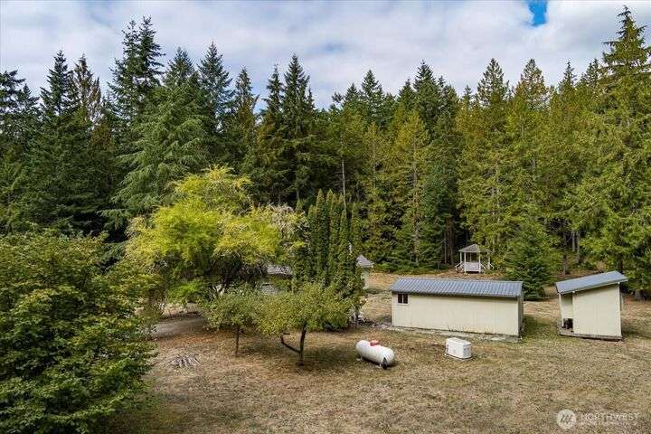 Welcome to Maxwelton Valley! This peaceful 2.3±-acre property offers a mature orchard, expansive outdoor spaces, and a large gazebo perfect for summer concerts, winter solstice gatherings, or simply enjoying the serene setting. The 2-bedroom, 2-bath, 1,415 sq ft home is ready for your vision. Bring your ideas and sweat equity to restore its charm and make it truly your own. A spacious wrap-around deck invites you to relax in the privacy of the mature landscaping, whether hosting friends or enjoying a quiet nap in the hammock. Tucked just off Maxwelton Road, this tranquil retreat combines natural beauty with endless potential. A great opportunity to create your dream Whidbey Island escape.