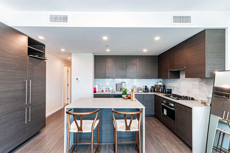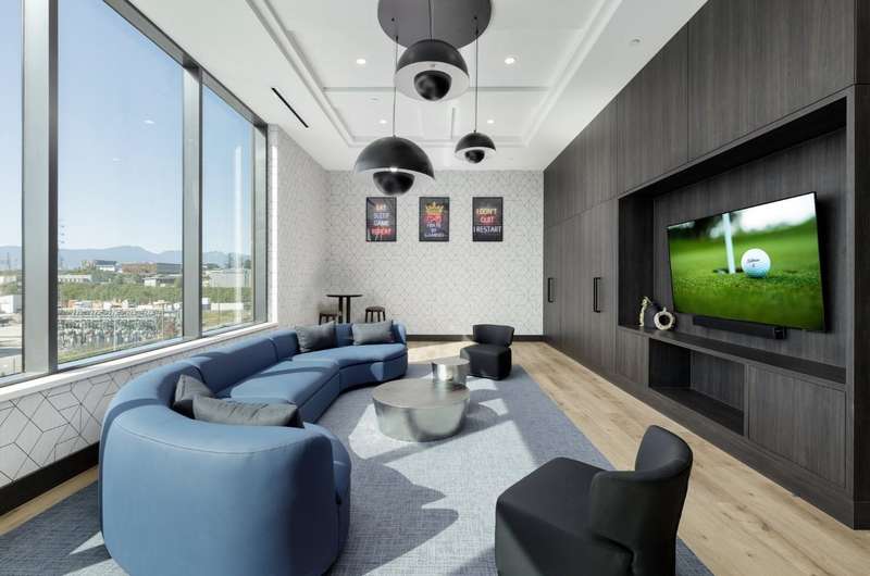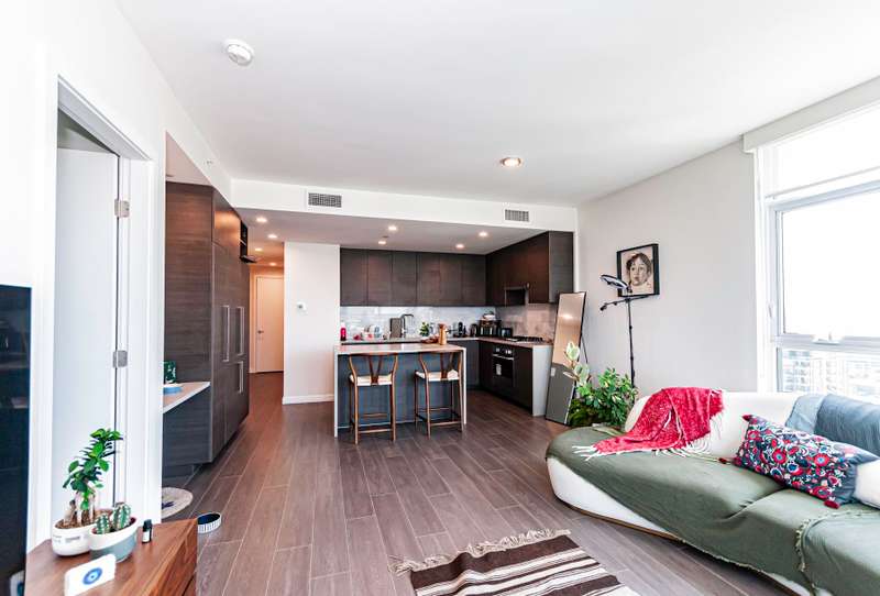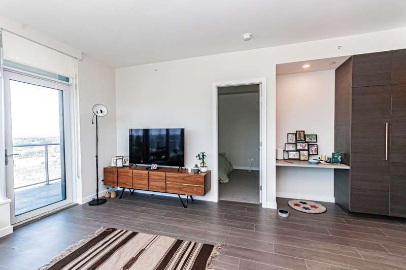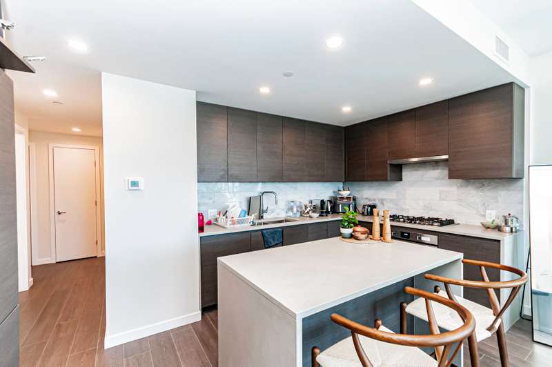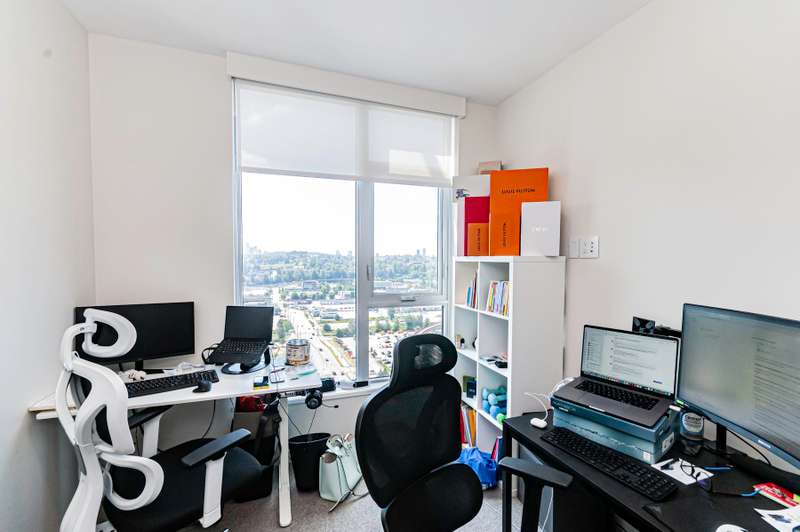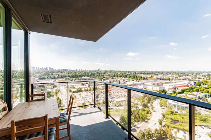 Welcome to Gilmore Place in the heart of Brentwood! This southwest-facing corner 2 bed + workspace home features one of the most efficient layouts in the building. Enjoy over 1,100 sqft of indoor/outdoor living with 9ft ceilings, A/C, and luxury finishes throughout. Perfect for morning coffees or evening BBQs, your private balcony offers breathtaking sunsets year-round. Resort-style amenities include 24hr concierge, gym, theatre, lounge, indoor/outdoor pool, billiards, kids' play area, and more! Steps to Gilmore SkyTrain, Amazing Brentwood, shops, dining, and the upcoming T&T — urban living at its finest!