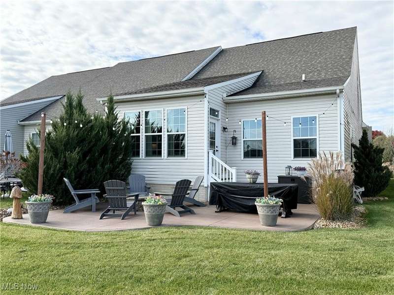 ALL I WANT FOR CHRISTMAS IS YOU!! Buy yourself the best gift this Christmas ? the dream of home ownership on Grey Hawk Golf Course! Nicely kept 2018 built one-owner 3 bedroom, 3 and a half bath townhome looking for a new owner this holiday season. Featuring open concept main floor living with 9' ceilings and a modern kitchen with extra tall upper cabinets, granite counters, tile backsplash, and stainless appliances. Conveniently located on the first floor, the primary suite boasts a walk in closet and en-suite bath. Spacious living room- this plan also includes the extended sunroom option making it slightly larger than most adjacent townhomes giving owners a bit more room to decorate. An adorable 1st floor laundry with cabinetry makes one floor living a breeze. Upstairs you'll find 2 additional bedrooms and full bath. The finished basement with new carpeting gives you extra hang out space PLUS adds an additional full bath! Peaceful water views and a large patio with gas fire pit make hanging outside with guests warm and cozy. Govee outdoor lighting compliments both the front of the home as well as the patio. There are 2 EV charging outlets in the attached garage which also features epoxy floors. Hurry ? make this home yours before the New Year!!