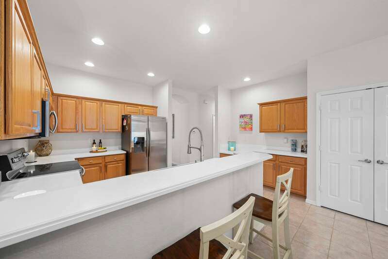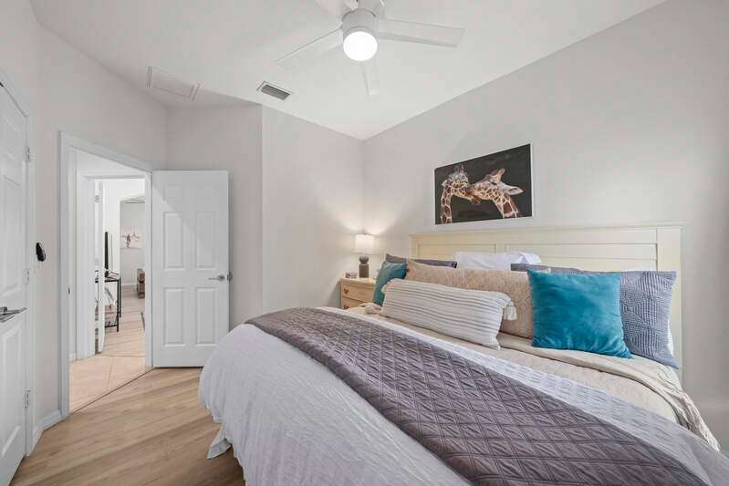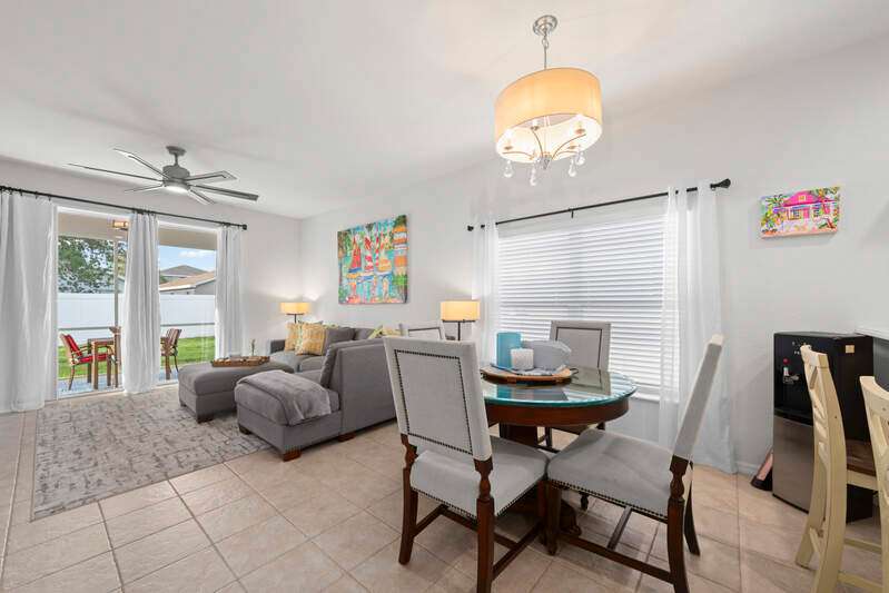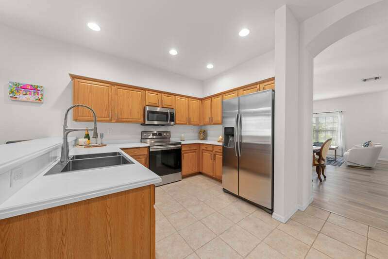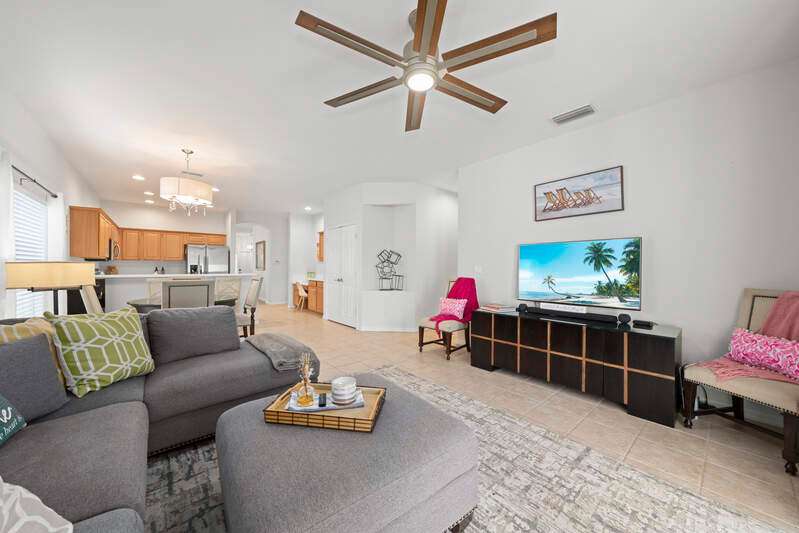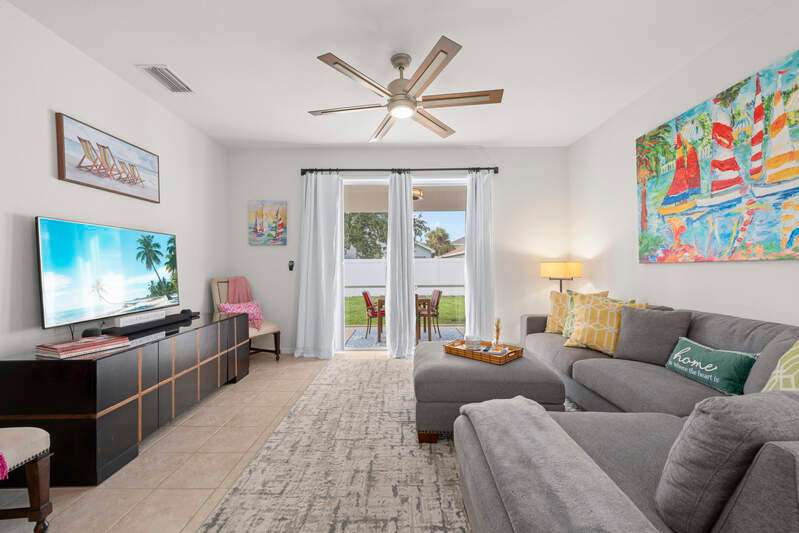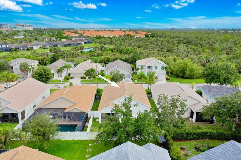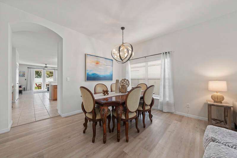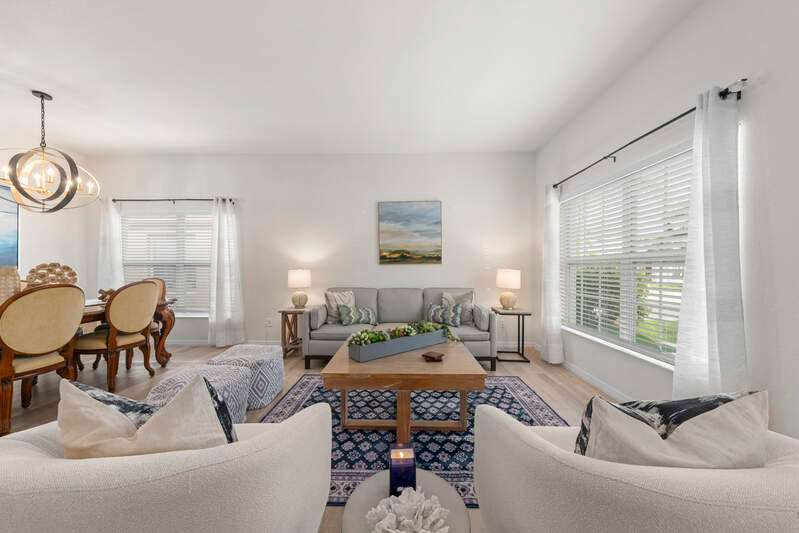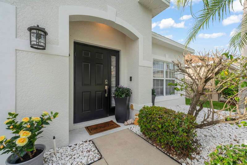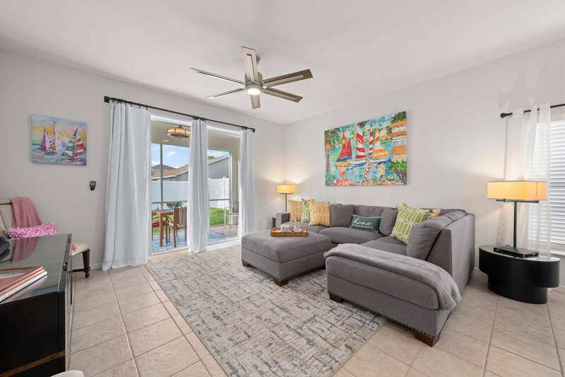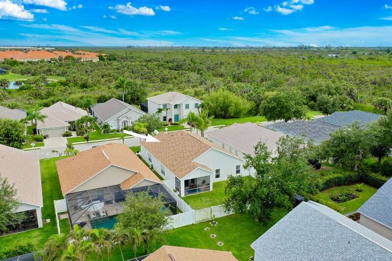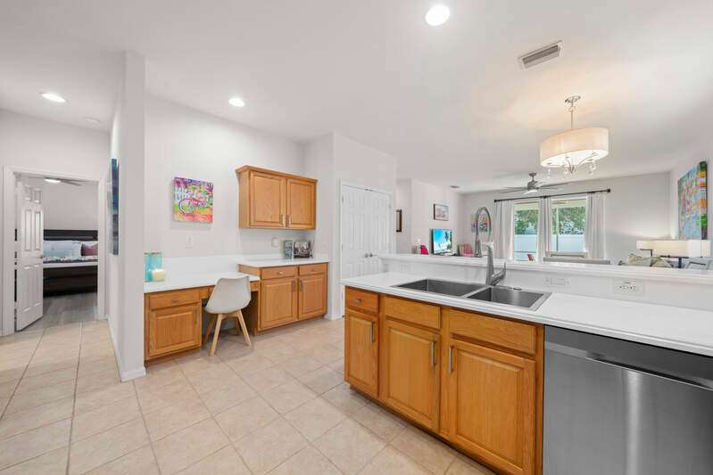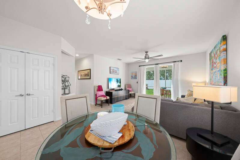 Every Home Has a Story - Welcome to 9795 Gladiolus Bulb Loop, where thoughtful design meets everyday ease. Lovingly maintained and nearly 2,000 square feet, this home is perfectly positioned in Gladiolus Preserve's quiet southwest enclave. Located on the neighborhood's interior loop, its unique placement on the non-sidewalk side provides the rare bonus of an extended driveway-both practical and appealing. Step through the door and into a freshly painted 2025 interior that feels bright, inviting, and ready for your personal touch. The open-concept living and dining area is accented by bespoke lighting and luxury vinyl plank flooring throughout, creating a polished and modern flow. The kitchen-complete with solid-surface countertops, wood cabinetry, stainless steel appliances, and a breakfast nook-blends style and function. Just beyond, the spacious great room offers a comfortable retreat, perfect for gatherings or quiet evenings at home. A neutral palette sets the stage for your own decor, accented here and there by vibrant works of Florida's celebrated artist Leoma Lovegrove. The thoughtful floor plan includes a primary suite with an adjoining flex room, easily adapted into a fourth bedroom, office, wellness studio, nursery, or sitting area. Outside, you'll find a fully fenced yard and a two-car garage, adding both practicality and peace of mind. Gladiolus Preserve carries a unique history-once flower fields, now a gated community of 240 single-family homes surrounding a tranquil freshwater lake. Residents enjoy a clubhouse, resort-style pool, fitness center, playground, and cabana, all while being minutes from beaches, dining, and shopping. Here, the balance of vibrancy and tranquility sets the stage for your next chapter.