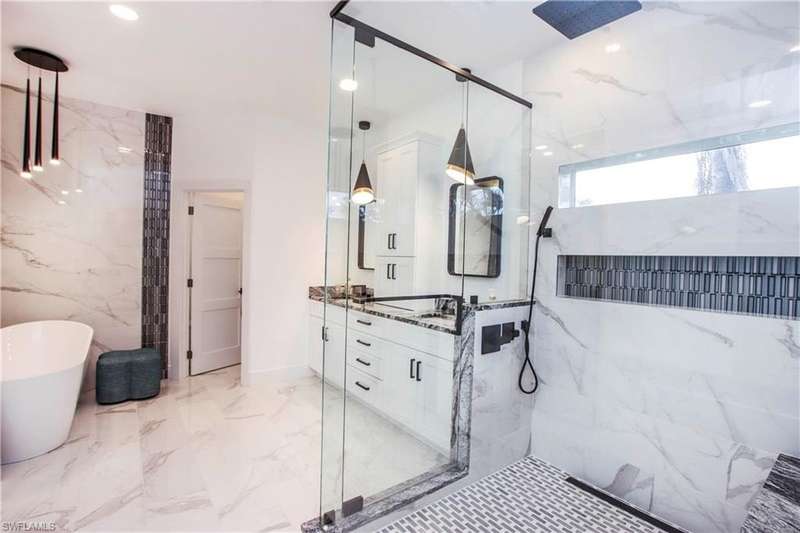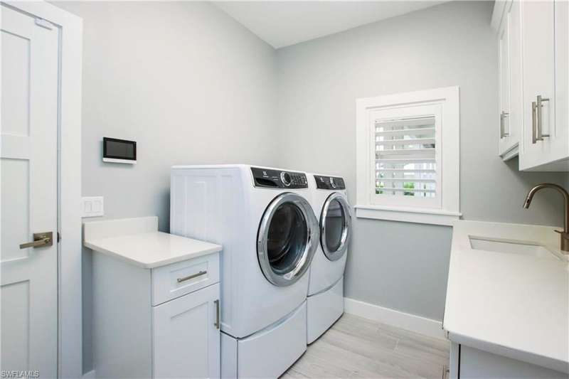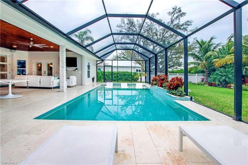 Welcome to an exquisite coastal retreat in South Fort Myers, where luxury and sophistication meet relaxed Florida living. This stunning four-bedroom, two-and-a-half-bathroom estate spans 2,363 square feet of meticulously designed space, delivering an unparalleled blend of style, comfort, and functionality. Nestled just moments from the world-renowned Sanibel and Fort Myers beaches, as well as premium marinas, this home offers an exclusive lifestyle in one of Southwest Florida's most coveted neighborhoods. Step inside to discover an open-concept layout that exudes contemporary elegance. The living area, with its abundant natural light, flows seamlessly into the gourmet kitchen. Here, you'll find top-tier appliances, complemented by waterfall-edge quartz countertops and a striking island—ideal for culinary endeavors or casual gatherings. Every detail in this home speaks of high-end craftsmanship, ensuring a luxurious living experience. The primary suite serves as a private sanctuary, occupying its own wing for maximum privacy. Unwind in the spa-like en-suite bathroom, which features dual vanities, a deep soaking tub, and an oversized walk-in rain shower. This retreat is designed for ultimate relaxation, promising serene moments of peace at the end of each day. French doors open to a sprawling outdoor oasis that epitomizes the best of Florida living. The resort-style backyard boasts a heated saltwater pool and spa, surrounded by 1,400 square feet of shell-stone travertine flooring. Here, you can enjoy the lush, tropical landscaping and bask in the sun or relax under the covered lanai, complete with automatic hurricane shades for year-round protection. An outdoor shower adds to the convenience, making this space perfect for both entertaining and everyday leisure. Additional features include an oversized, air-conditioned 2.5-car garage with epoxy flooring and custom built-in cabinetry, a fully equipped laundry room, and a new metal roof installed in 2021. No detail has been overlooked in this professionally remodeled home, ensuring a move-in-ready experience for the discerning buyer. Gulf Harbour Yacht & Country Club membership is available, offering access to world-class amenities. This extraordinary residence is more than a home—it's a lifestyle. Don't miss your opportunity to own this slice of paradise.