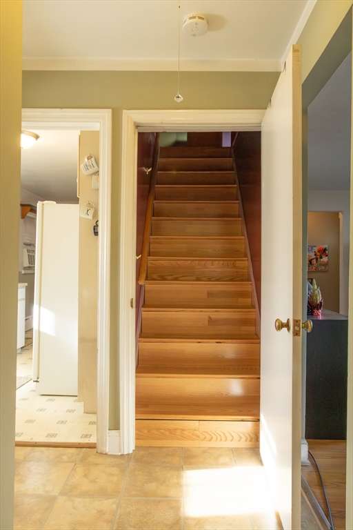 Enjoy this cozy & quaint 3 bedroom home in a wonderful location, close to all downtown & shopping amenities. This home features efficient natural gas heating, spacious living room with natural light and original hardwood floors. The primary bedroom is conveniently located on the first floor, and the second bedroom offers a door to the outdoor deck, great for relaxing and entertaining. The upstairs offers additional space large enough for an office, play room, or additional bedroom space. Potential for a second floor bathroom. The partially finished basement with updated flooring offers additional usable space & great storage. All appliances including washer & dryer stay with the property. make this your charming new home sweet home!