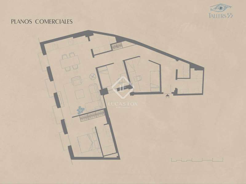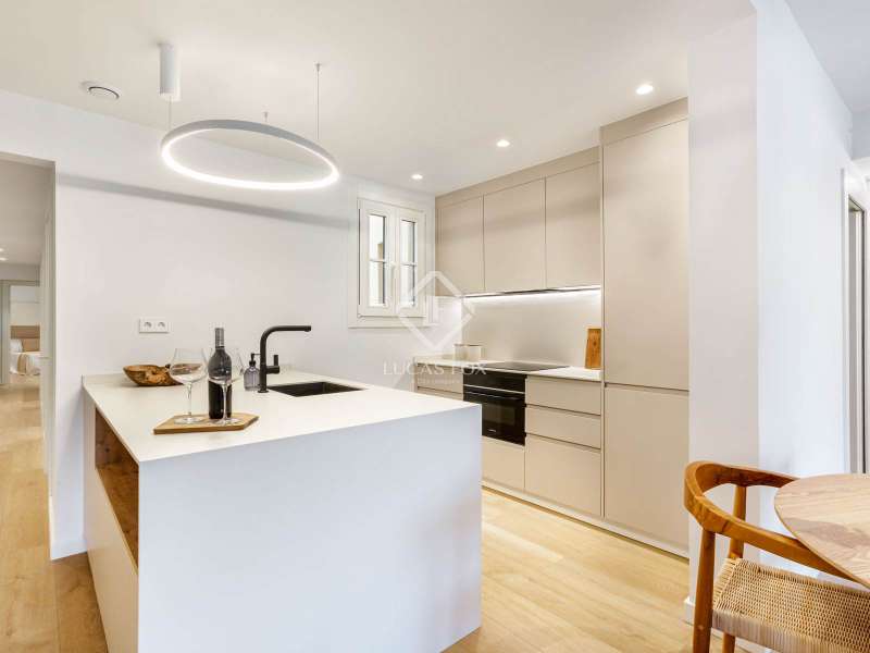 Lucas Fox presents Tallers-Residences, an exclusive new build development in the heart of Barcelona. Located in a fully refurbished historic building , this collection of 12 homes combines original architectural charm with a contemporary and elegant interior design. The spacious apartments, with three bedrooms and floor areas ranging from 108 to 120 square meters, stand out for their functional layouts, high ceilings, and high-quality finishes. Wooden carpentry, synthetic wooden floors , and bathrooms clad in large-format porcelain tiles create sophisticated and inviting spaces. The kitchens, equipped with high-end appliances , are designed to offer maximum comfort and functionality. This particular property is located on the third floor of the building and has 108 m² of interior space and 8 m² of private exterior space. It has three bedrooms, two bathrooms (one en suite ), and a spacious living room dining room area with an open kitchen, designed to maximize natural light. Its functional layout and open-plan design provide a sense of well-being and fluidity in every room. The development includes an exclusive communal area with a pool and sun terrace, as well as a social and coworking space. These are ideal spaces for relaxing, socializing, or working without leaving home. Some homes feature private balconies or terraces, providing added value in one of the city's most coveted locations. Tallers-Residences represents a unique opportunity to live in the centre of Barcelona and enjoy all the comforts of a modern property without sacrificing the character and history of its surroundings. Don't hesitate to contact us for more information and to arrange a visit.