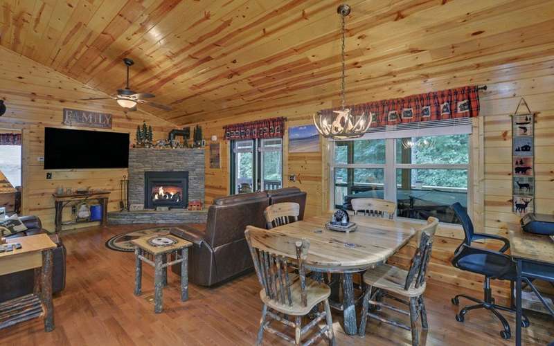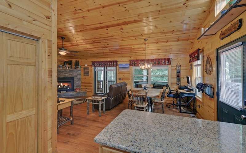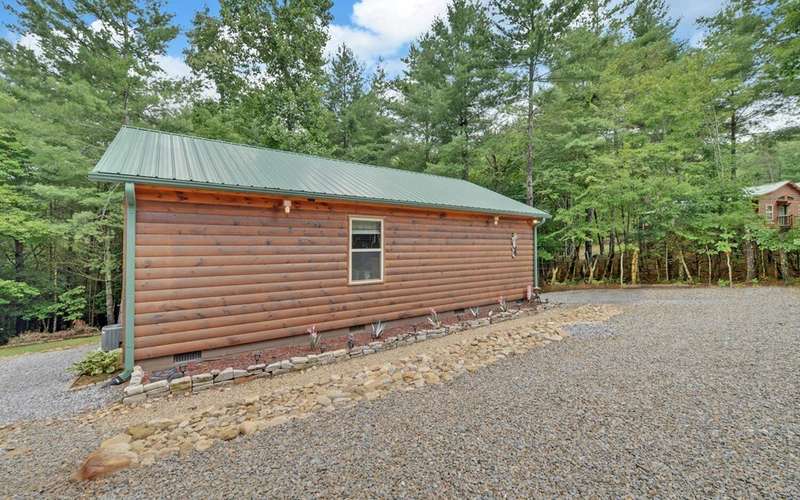 Tired of noise, traffic, and tiny backyards? Escape to this log-sided cabin, where soaring cathedral ceilings, rich wood finishes, and a stone fireplace set the tone for mountain living with comfort and style. The open-concept layout features granite counters, walk-in closets, and main-level laundry with a brand-new stacked washer and dryer. A new refrigerator adds to the move-in readiness, and the home is offered furnished, with flexibility if preferred otherwise. Fiber optic internet supports remote work or streaming. An 8-foot-wide deck wraps around the full covered porch and leads to a lower level fire pit area. The covered porch includes a hot tub. A brand-new 12x16 shed doubles as a workshop. Seller is motivated and ready to make a deal on this inviting 2-bed, 2-bath getaway just minutes from downtown Murphy.