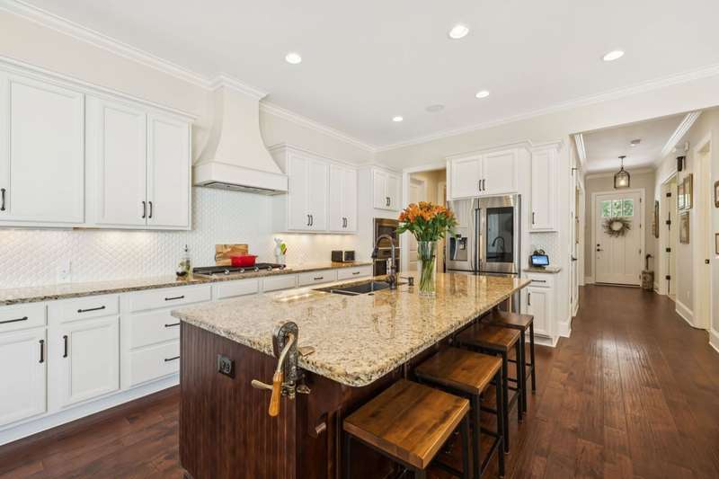 Looking for the perfect location? Lockwood Glen in Franklin, TN, might be the answer. This stunning property boasts a 4-bedroom, 3 1/2-bath layout, complete with a spacious dining room and large kitchen featuring a generous island with granite countertops, backsplash, under cabinet lighting, stainless appliances, gas cooktop, and hardwood floors. The open floor plan seamlessly connects the kitchen to the great room, while three bedrooms and three baths are conveniently located on the main level. Additional amenities include laundry facilities, an ice maker, beverage fridge, an interior switch to control your out door holiday lighting and more. Upstairs includes, bonus room, office, bedroom and a 1/2 bath. On the backside of the 1/2 bath is plumbing for a tub/shower to update the 1/2 bath to full bath. The property also features a 3-car garage, with ample parking space for up to six cars on the driveway. This home offers both style and practicality. Plus, enjoy walk-in storage and plenty of natural light throughout, a covered front and back porch with an additional large patio. The neighborhood itself is a haven, with amenities like a clubhouse, two pools, a half basketball court, playground, and fire pit. When you want to host without the hassle, take advantage of the poolside grill area. Don't miss the newest Franklin park being built across the street. The Pearl Park is going to be a great addition to the area.