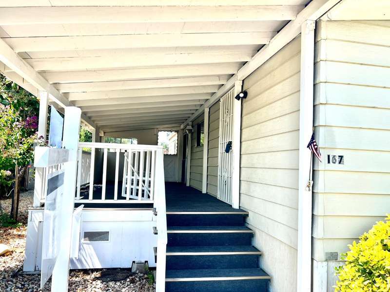 Welcome to 167 Rimma Way, a clean and spacious 2 bed, 2 bath home located in the desirable 55+ community of Country Villa in Roseville. This well-maintained 1,152 sq ft double-wide manufactured home offers a comfortable layout with updated features throughout. Freshly installed carpet in the living room and on the covered deck adds warmth, while durable flooring in high-traffic areas ensures easy upkeep. The home features a large living area that flows into a formal dining space, complete with built-in cabinetry. The kitchen offers ample storage, a gas range, and a convenient layout that opens to a cozy breakfast nook. Both bedrooms are generously sized, with the primary suite offering a private bath and walk-in shower. The second full bathroom serves guests or residents with ease. Enjoy the outdoors from your covered front deck or tend to light gardening projects in the backyard, where a small brick patio and existing garden box foundation provide space to relax or plant. A covered carport and outdoor storage shed offer added convenience. Country Villa is a quiet, tree-lined community offering amenities including a clubhouse with social activities, a swimming pool, indoor spa, lounge area, library, and billiards. Located close to shopping, medical offices, and dining.