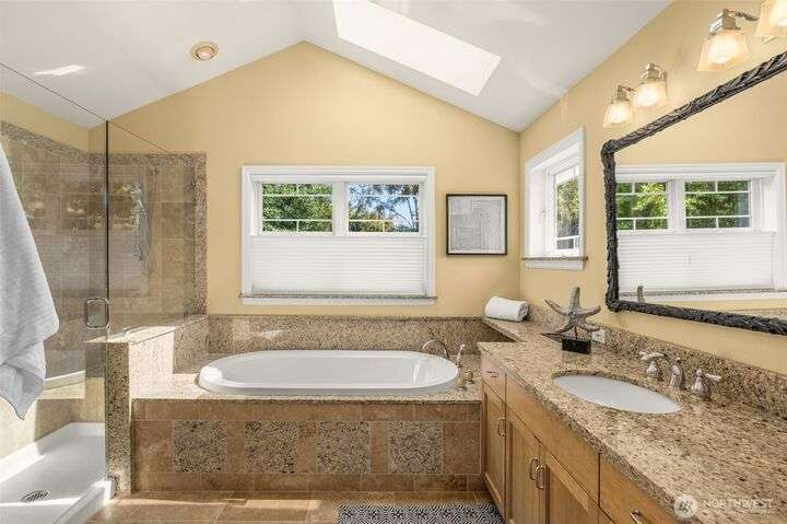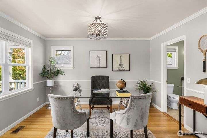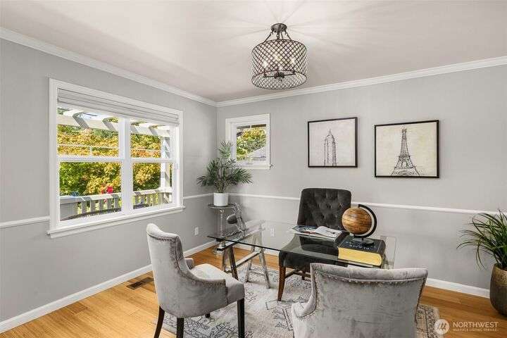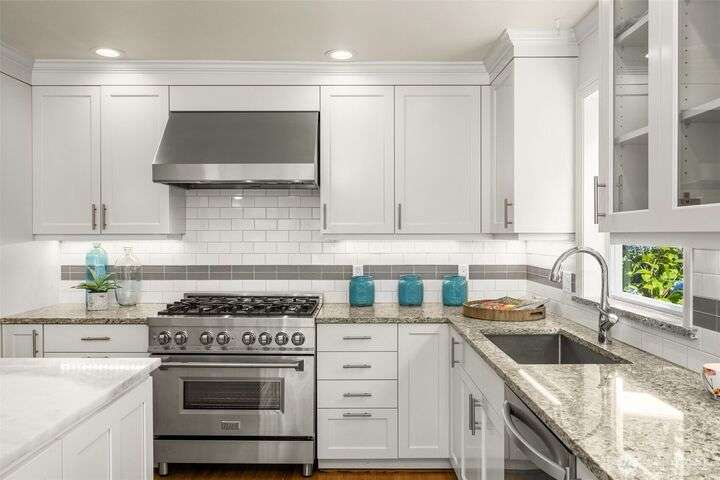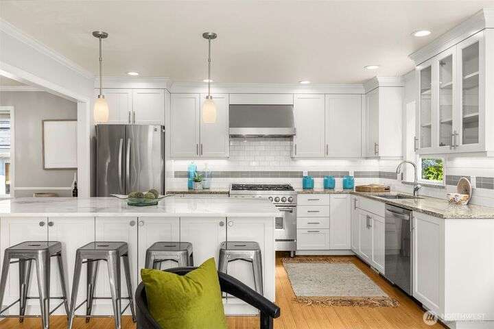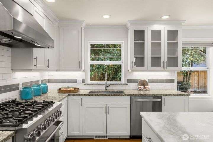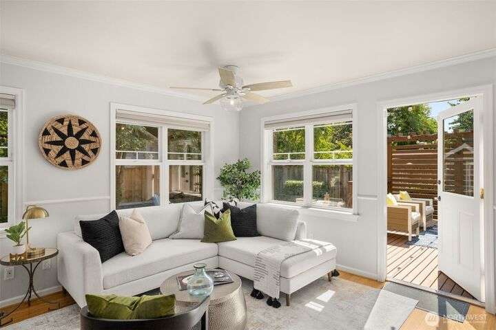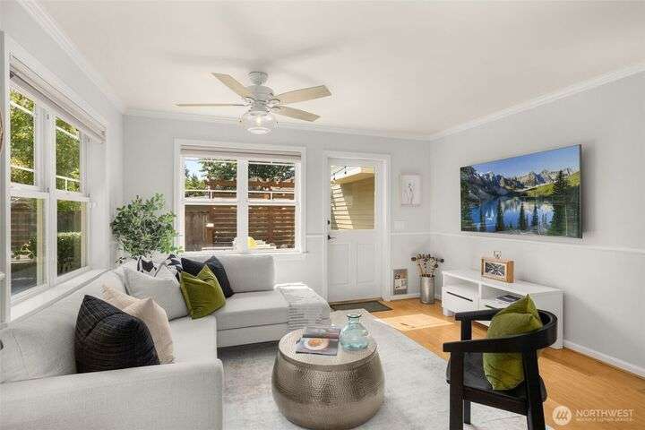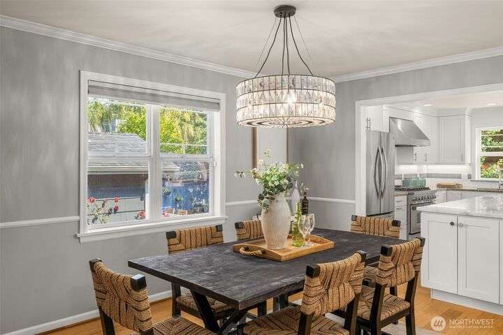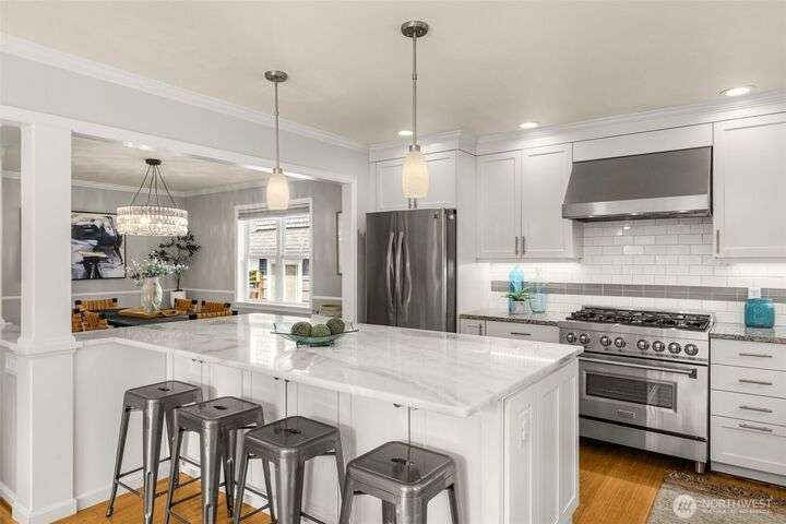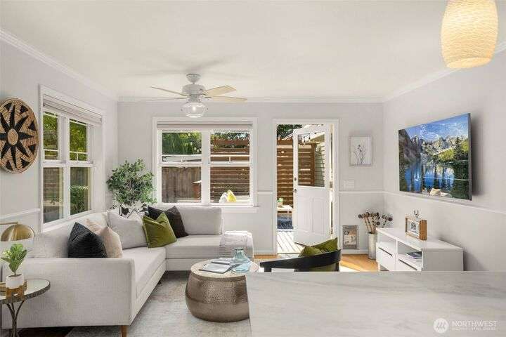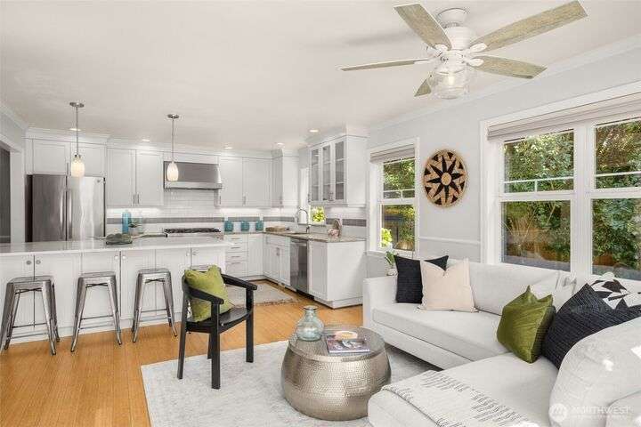 Craftsman character meets modern ease in the heart of Belvidere. Sunlit and timeless, this inviting home showcases classic finishes and thoughtful updates throughout. The remodeled kitchen boasts quartz counters, stainless appliances, and a large island that flows seamlessly into dining and living areas—perfect for everyday comfort or entertaining. Upstairs, three bedrooms sit together on one level, including a vaulted primary retreat with peaceful outlooks. Outdoor living shines with a fenced yard, sunny deck, and patio. An attached garage, mudroom, and basement storage add convenience. Just blocks from North Admiral cafés, groceries, and shops, w/ the West Seattle Bridge minutes away.