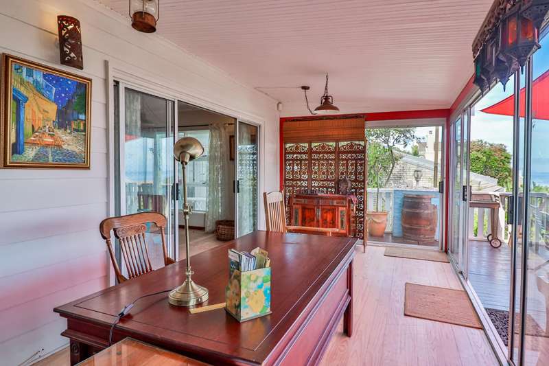 JOINT MANDATE Such incredible birdlife and joy envelopes this pretty Nutec home on three levels with double garage on ground floor, 2nd floor hosts 3 bedrooms all on suite and the 3rd floor is the main attraction to this home with a full penthouse large living area and kitchen and opens to a deck with awesome sea views and a nice size bedroom on suite with sunroom to the mountain. The home offers either a large family home or for more than one family as a dual living or a multipurpose home to generate income with private access to each of the rooms. Home offers 4 bedrooms and 4 bathrooms with a large open plan living/dining area and cozy fireplace and opens to the balcony with sea views. Nice size kitchen with fitted gas stove and separate scullery. The wood floors also add a cozy feeling to this home. Nestled in a very calm landscaped garden with private living from the street. and lots of birdlife. Equipped with an inverter 5 lithium battery and 8 panels makes this a very tempting buy. Highly recommended for this price and location as well as all the accommodation it offers makes this a very tempting buy.