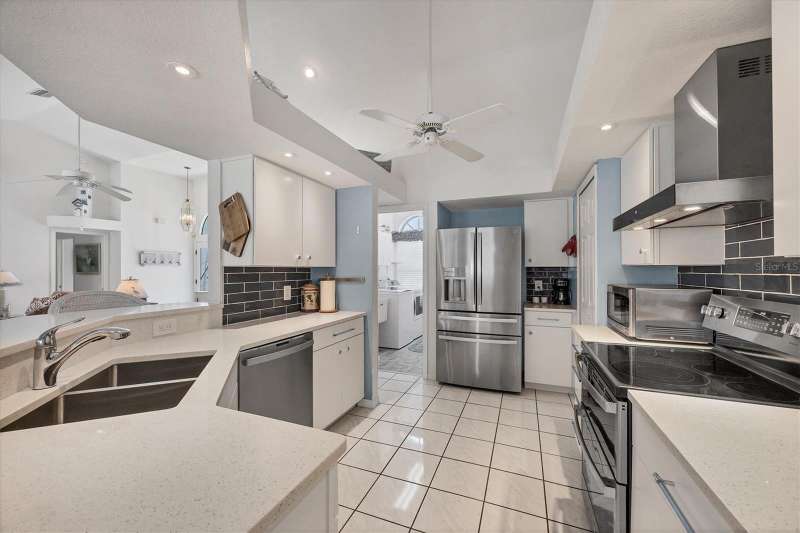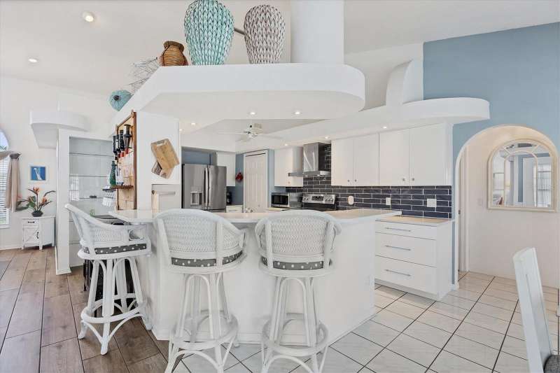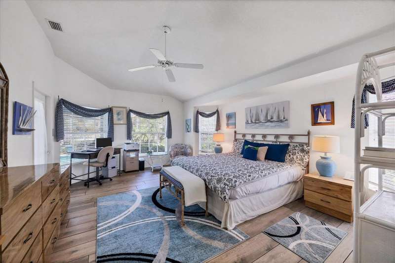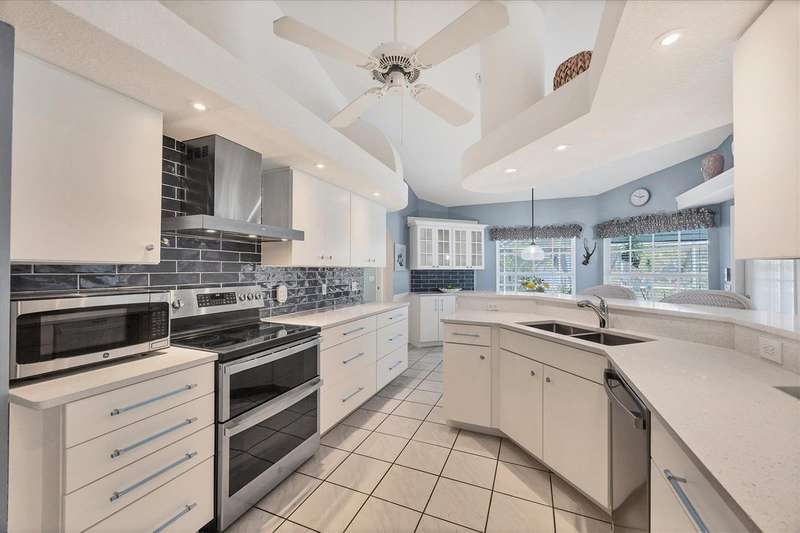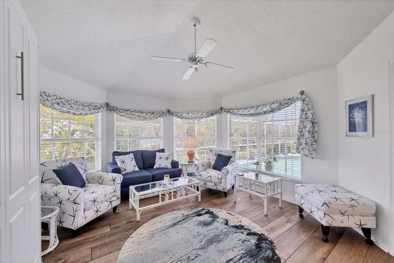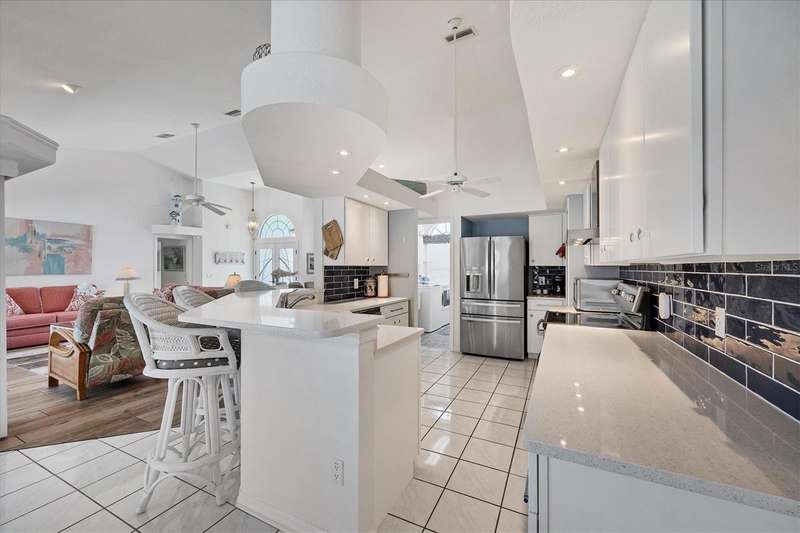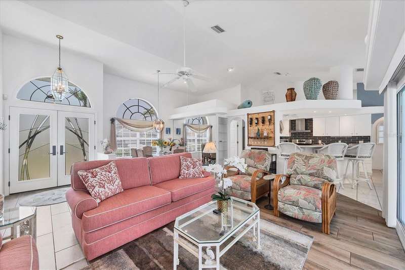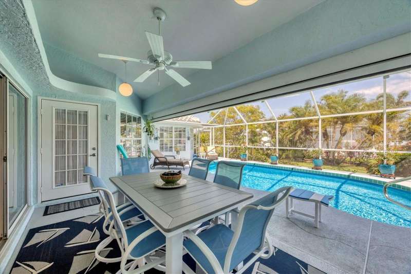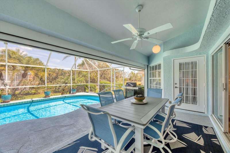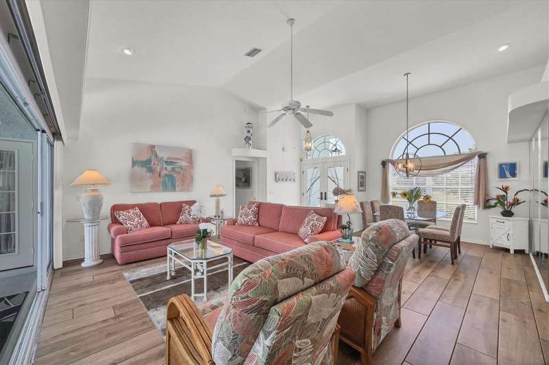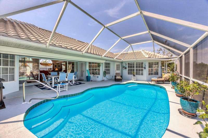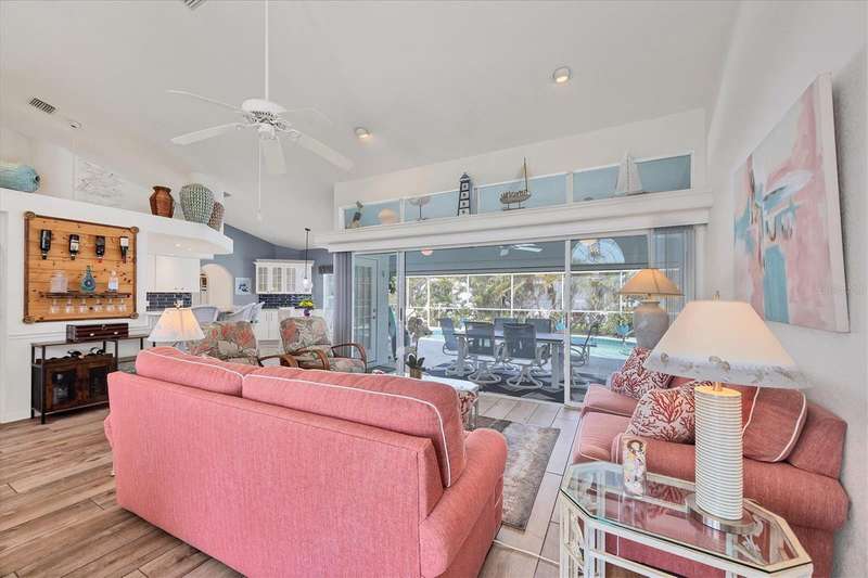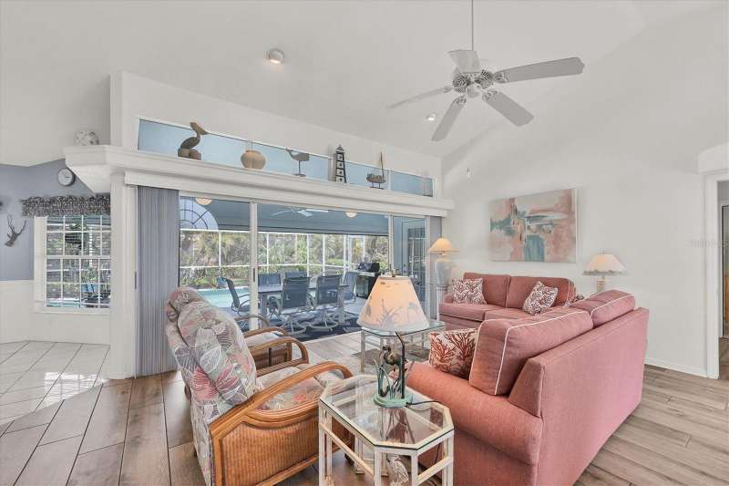 Welcome to your coastal retreat in the Cape Haze Windward community of Placida, where luxury, comfort, and peace of mind come together. Settled on an oversized lot of more than half an acre, this meticulously maintained property has been thoughtfully updated, completely move-in ready and hurricane protected. Brand new impact windows, an electric hurricane screen, and all-new lanai screens offer protection and tranquility year-round. The 2023 tile roof adds a fresh, coastal look and long-lasting durability. Large glass sliders leading to the lanai offer a seamless indoor-outdoor living experience with a sparkling pool view and mature landscaping for added privacy. The recently resurfaced pool comes with a lifetime warranty, and a new heater ensures year-round enjoyment. Inside, the home features a bright and open layout with soaring high ceilings and tile flooring throughout. The kitchen was fully remodeled in 2023 with all-new appliances including a dual oven, updated cabinets, quartz counters, and stunning backsplash. The kitchen is complete with a large breakfast bar, dinette area with additional cabinet and counter space, plus a formal dedicated dining room. The large master suite features two walk-in closets, pool access, a spacious bathroom with dual sinks, and a large soaking tub under the skylight with separate shower. A custom Murphy bed with built-ins, valued at $5k, adds flexibility and style to the second guestroom. The guest bathroom has been tastefully modernized featuring a tile shower with extended-height glass and a skylight for a spa-like touch. The dedicated laundry room with utility sink leads to the garage, which has been finished with epoxy flooring and a built-in workshop bench ideal for projects or extra storage. The property also boasts a freshly re sodded lawn supported by a well-fed irrigation system. Further updates include a 2020 electric water heater and a 2017 AC unit. Set in a quiet and desirable golf-friendly neighborhood close to Boca Grande beaches and boating, this home offers everything you need to enjoy the Southwest Florida lifestyle.