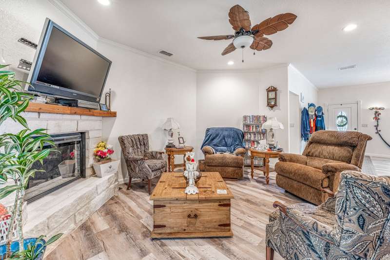 Beautifully set along the greens of the Par Golf Course, this 2023-built home combines modern design with timeless comfort. Featuring 3 bedrooms, 2 bathrooms, and an additional bonus room upstairs perfect for guests or a home office, this property offers both flexibility and function.Inside, youll love the open floor plan with tall ceilings, granite countertops, and a stunning rock fireplace that creates a warm and inviting focal point. The sunroom provides the perfect spot to relax year-round while overlooking the private, fenced backyard.The master suite is a retreat of its own with an oversized walk-in closet and spa-like en suite bathroom, giving you the luxury and space you deserve. Outside, enjoy quiet mornings and evenings on the charming front porch while taking in the serene golf course setting.With its thoughtful design, modern finishes, and prime location right on the green, this home is the perfect balance of style, comfort, and privacy.Don't miss out on the opportunity to own this gem!!
