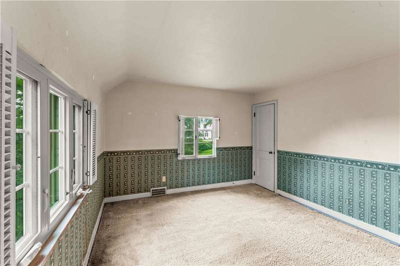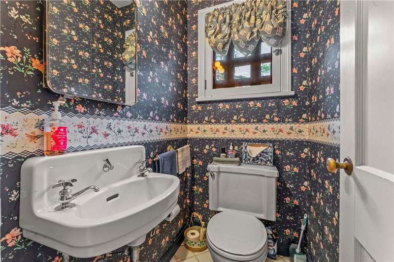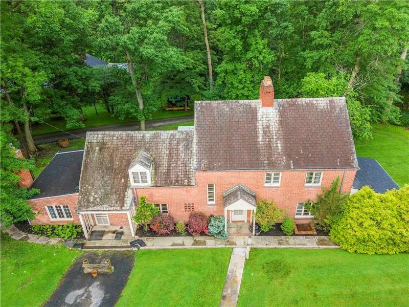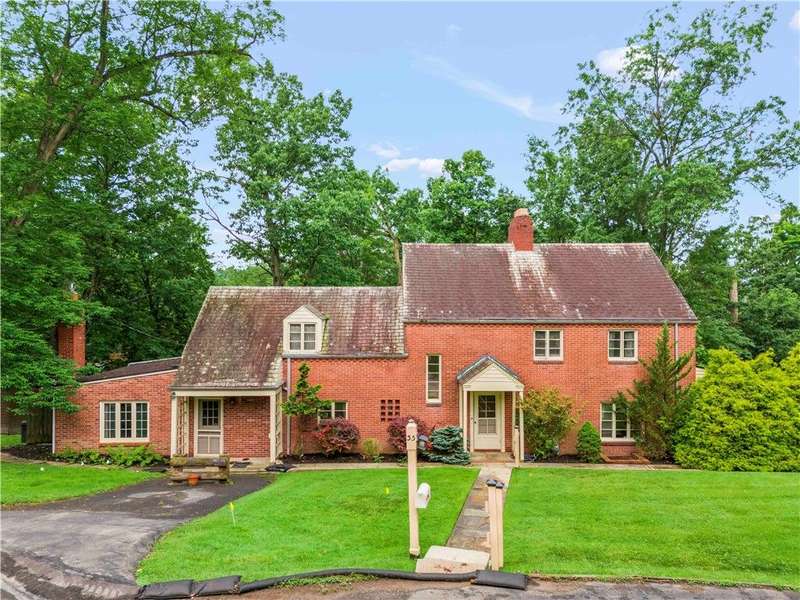 Welcome to 35 Redstone Lane! Nestled on a peaceful cul-de-sac surrounded by mature trees, this charming brick colonial offers space, character, and privacy. The elegant living and rustic family rooms each feature beautiful fireplaces, with bay windows flooding the home with natural light. The fully equipped kitchen includes a walk-in pantry and bonus "laundry chute." Enjoy the screened-in sunroom and a greenhouse/ farm to table option. Upstairs, find 4 spacious bedrooms, 2 full baths, full of vintage finishes. A beautiful handmade curved staircase, original hardwood floors, beamed ceilings, and custom built-ins add timeless charm to this unique home. The main level offers a flexible bonus room, perfect for an office or guest space. The basement provides generous storage, laundry, and a workshop area. Redstone Lane combines classic design with peaceful living?close to everything yet tucked away from it all. Don't miss this one-of-a-kind home!