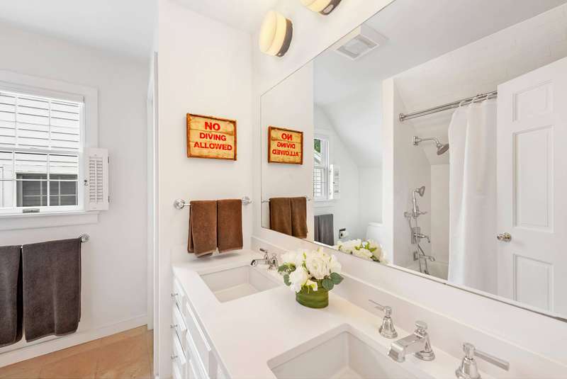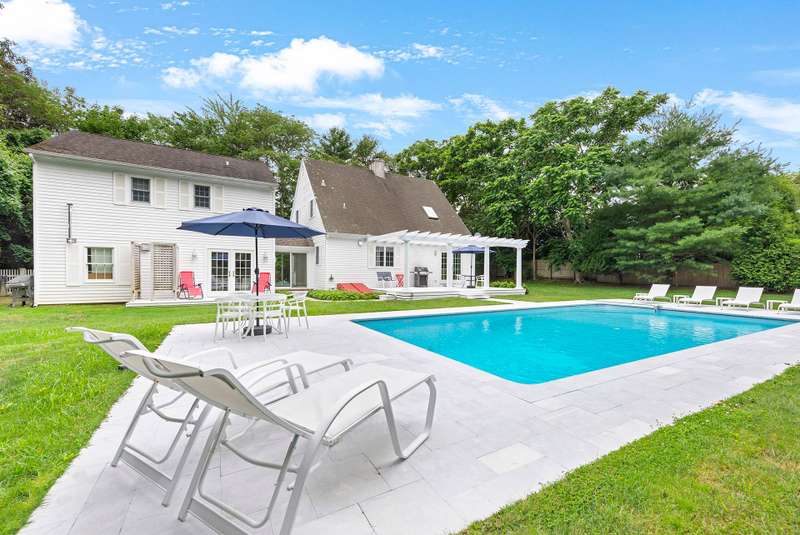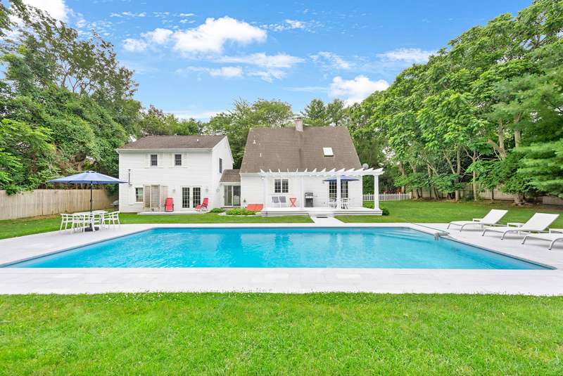 Rental Registration #:24-1273. Absolutely fabulous -- yet simple and casual beachy white decor. Newly renovated kitchen and wide bleached plank wood flooring sets the stage for white slip-covered furniture and white country chic bedrooms. The 2-story traditional has five bedrooms, five bathrooms with good separation for privacy. Two living areas and a den. The light bright home has central air, heated pool, outdoor shower, large green lawn area with newly updated pool patio area, all on a flag lot full of sun and privacy. Listing ID:738114