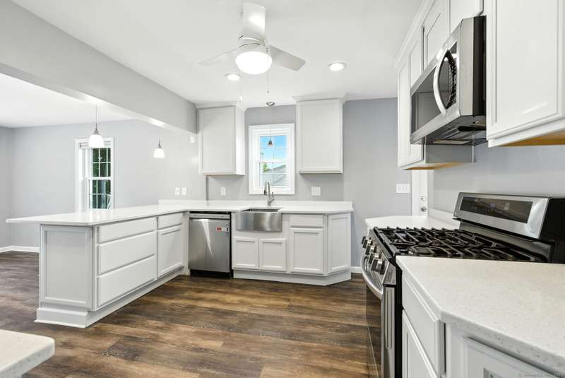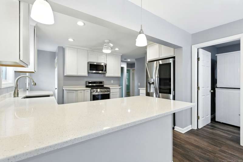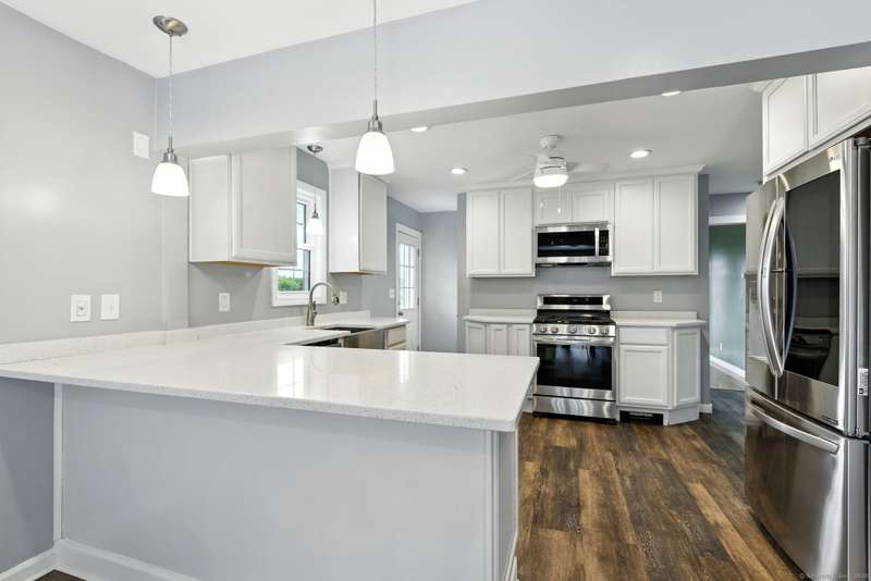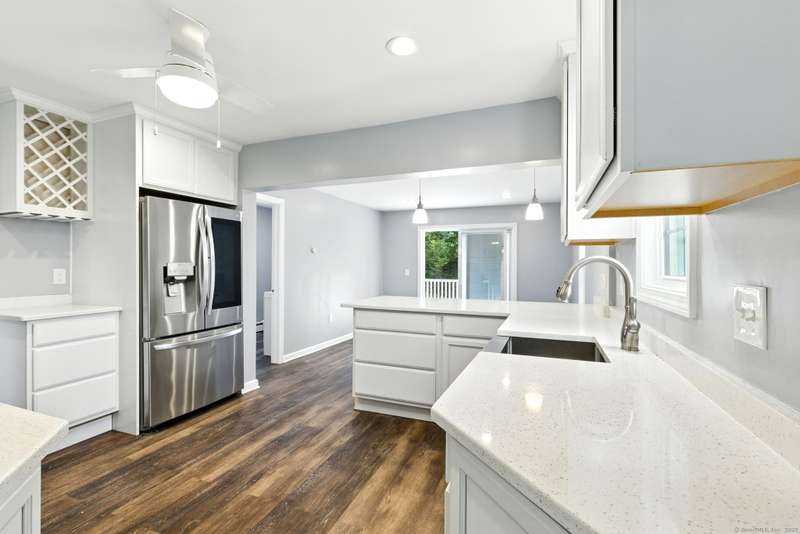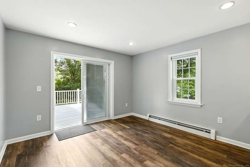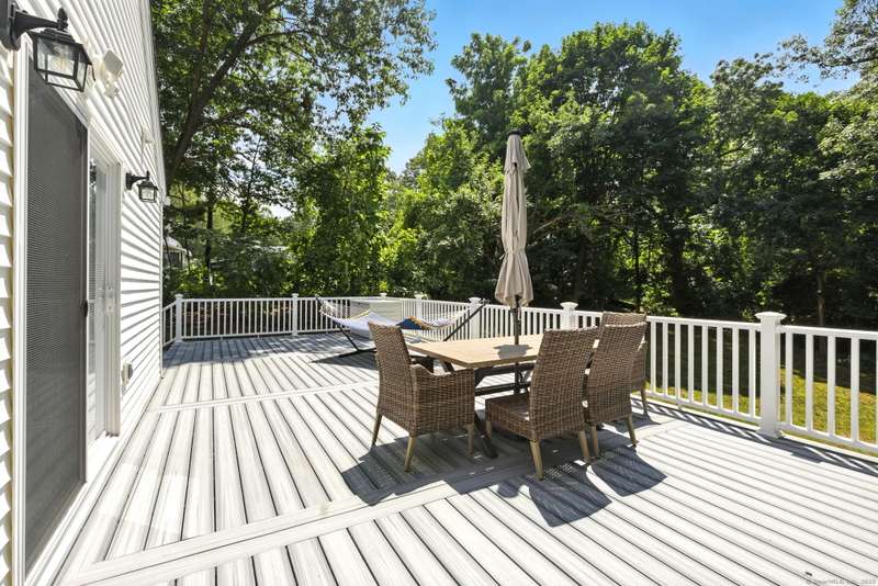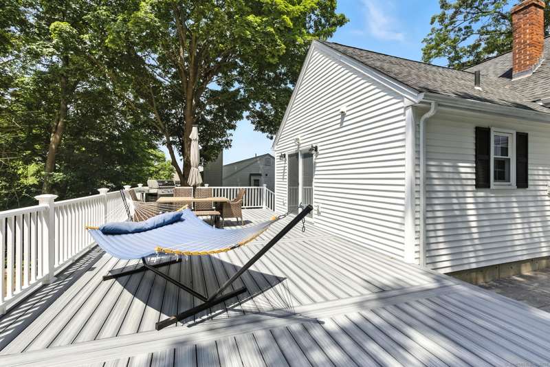 Picture this: you're cooking in a kitchen that actually makes you want to cook, gas stove sizzling, sleek new cabinets and counters giving you all the space you need, recessed lighting setting the perfect mood, and sunlight pouring in while friends or family hang at the table nearby. When dinner's ready, you don't just sit down-you slide open the door and bring the meal right out to your brand-new deck and patio, where the backyard becomes the backdrop for every gathering. Whether it's summer dinners under the stars, fall nights around a fire pit, or a lazy Saturday afternoon with a book in the sunshine, the outdoor space here is pure magic. The yard has been opened up with thoughtful tree clearing and professional landscaping, giving you that rare mix of wide-open green space and just the right amount of privacy. Inside, fresh carpets keep things cozy, the remodeled bathroom adds style, and smart upgrades -like new windows, gutters, heating system, and storm door, meaning the not-so-f