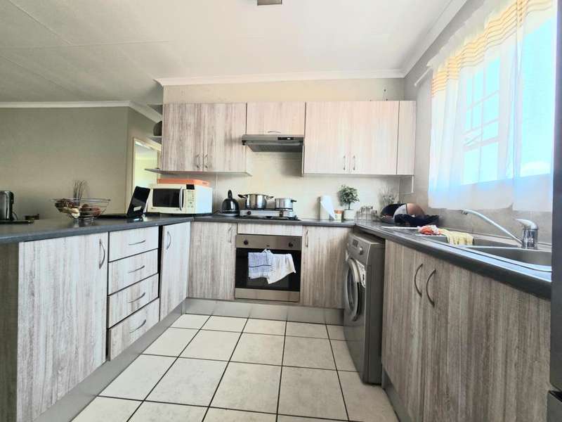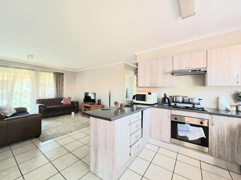 This charming 2-bedroom apartment offers a comfortable and modern living space, perfect for small families, professionals, or investors. With a spacious 73 m?? floor area, the apartment features two bedrooms with built-in cupboards, a well-designed bathroom, and an open-plan kitchen that flows seamlessly into a cozy lounge area. A private balcony adds a delightful outdoor space, ideal for relaxing or enjoying the fresh air. The property includes one covered parking and one open parking space, ensuring convenience for residents and guests. Security is a top priority, with 24-hour surveillance, electric fencing, an intercom system, and a secure access gate providing peace of mind. The paved surroundings enhance the neat and low-maintenance exterior. Set in a well-maintained complex, this apartment combines comfort, practicality, and security, making it an excellent choice for a home or investment.