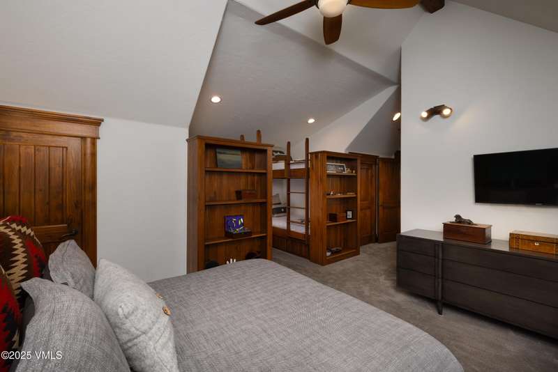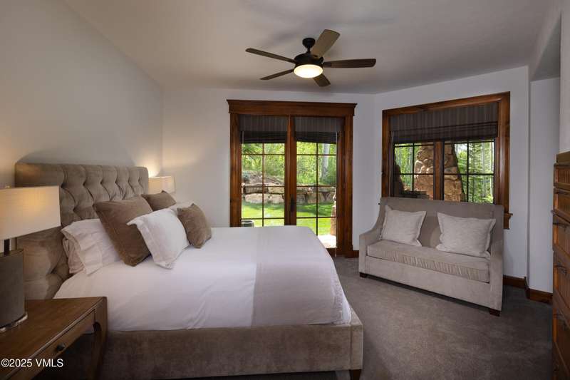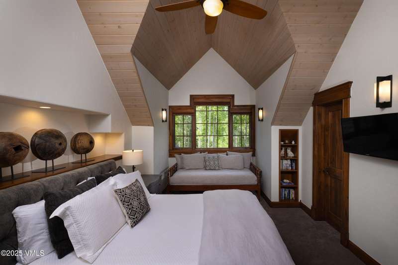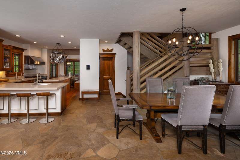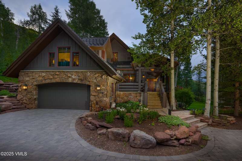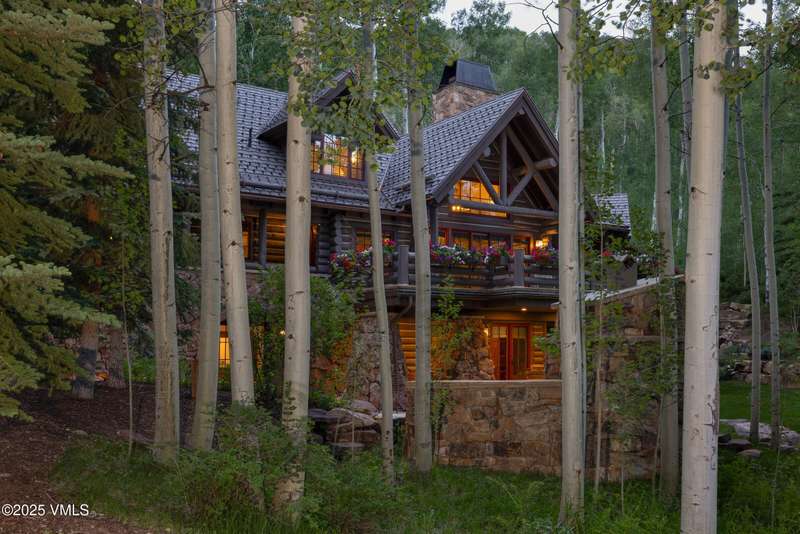 This beautifully appointed single-family home in the exclusive gated community of Mountain Star is truly a mountain retreat. Nestled in a private setting, directly adjacent to the USFS, this log home features stunning landscaping complete with a double water feature, creating a serene and inviting atmosphere. The interior welcomes you with an expansive open floor plan, filtered mountain views, and rustic elements like vaulted ceilings with log beams and a stone wood burning fireplace. The cozy dining room area is perfect for intimate meals, while the adjacent kitchen is a chef's dream, equipped with a Viking professional stove, granite countertops, an island for prepping meals, bar seating for entertaining, a charming breakfast nook, all set on beautiful hardwood flooring. The space opens to a deck surrounded by aspens, featuring outdoor furniture, a gas grill, and a built-in TV. The main level includes a private office with a fireplace, leading to the primary bedroom with deck access, a walk-in closet, and a luxurious bath with a soaking tub and steam shower. Upstairs, two large bedrooms with ensuite bathrooms offer comfort; one with custom bunk beds and bookshelves, the other with a daybed and spacious bath. The lower-level of the home is designed for entertainment; it includes a large family room with a natural stone gas fireplace, wine closet, pool table, and a built-in kitchenette with custom cabinetry and shelving. This level provides direct access to the grassy yard and patio from the fitness/gym room where a large hot tub and an outdoor gas fireplace create a tranquil retreat amidst the woods. Additionally, the lower-level houses two guest bedrooms that share a full bathroom. The home also features a two-car garage with custom storage and a partially heated driveway for added convenience; DaVinci roof. This beautiful residence, minutes from the main resorts, is being sold furnished.