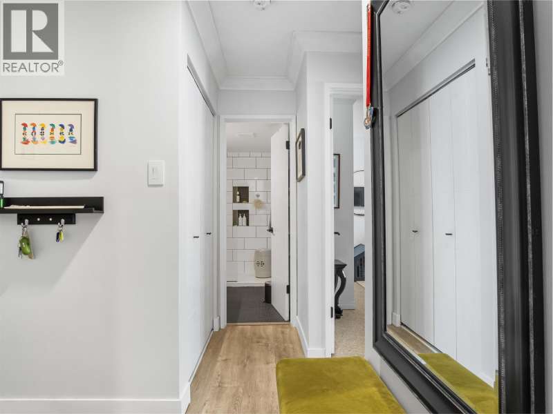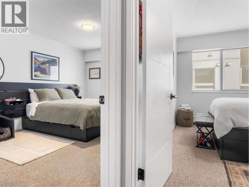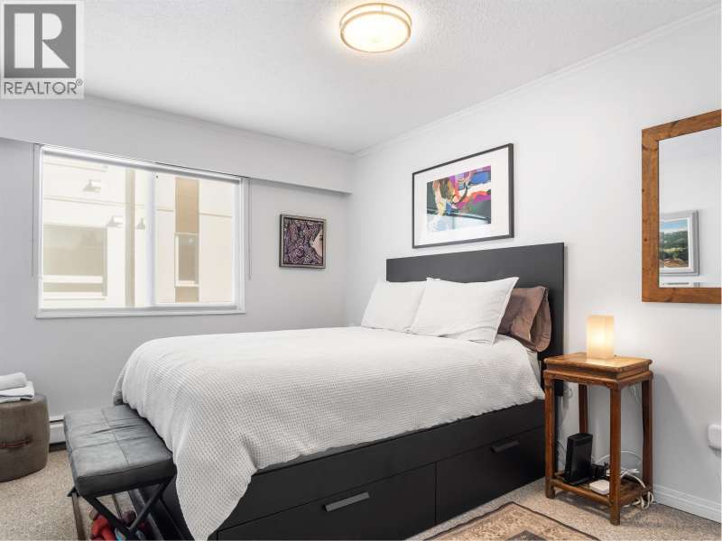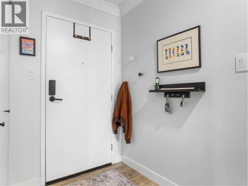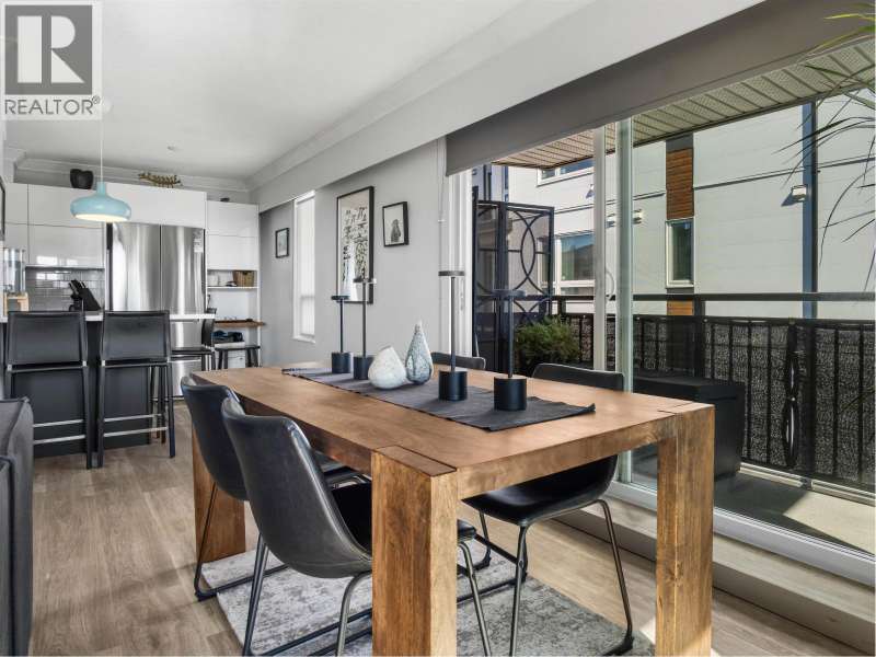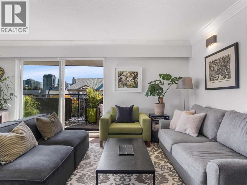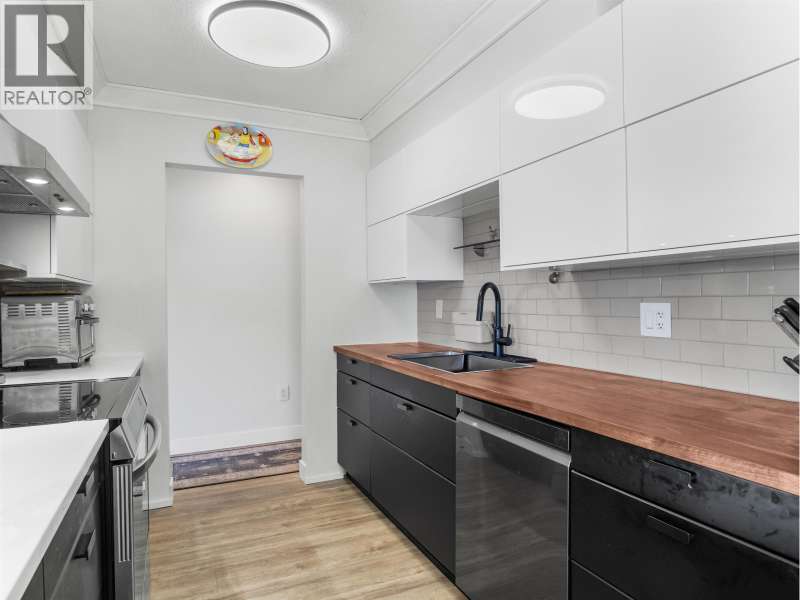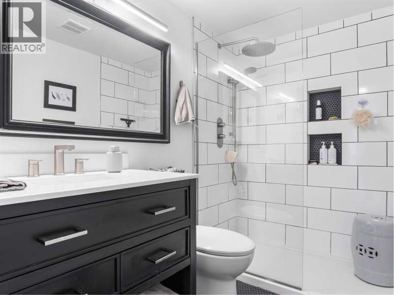 Gorgeously renovated, south facing 2BR/1BA condo in Central Lonsdale! This top floor, corner unit has extensive updates. In the kitchen, recent appliances with induction stove plus all new cabinets, wood and stone countertops extended to an eating area. The large, bright living/dining area features durable wide plank vinyl floors, plus an updated gas fireplace and looks out to a huge and sunny wrap around balcony that overlooks the treed street. Beautifully tiled bathroom has an updated shower with inset nooks for storage. Recent closet doors, light fixtures. The well-run building has many upgrades including balconies, windows, sliding doors, electrical, plumbing. Steps away from all Central Lonsdale shops, medical, new Harry Jerome and minutes to the highway. 1 pkg, 1 stg, dog or cat ok. (id:58403)