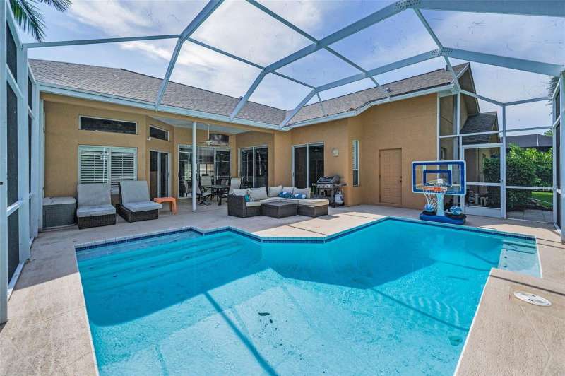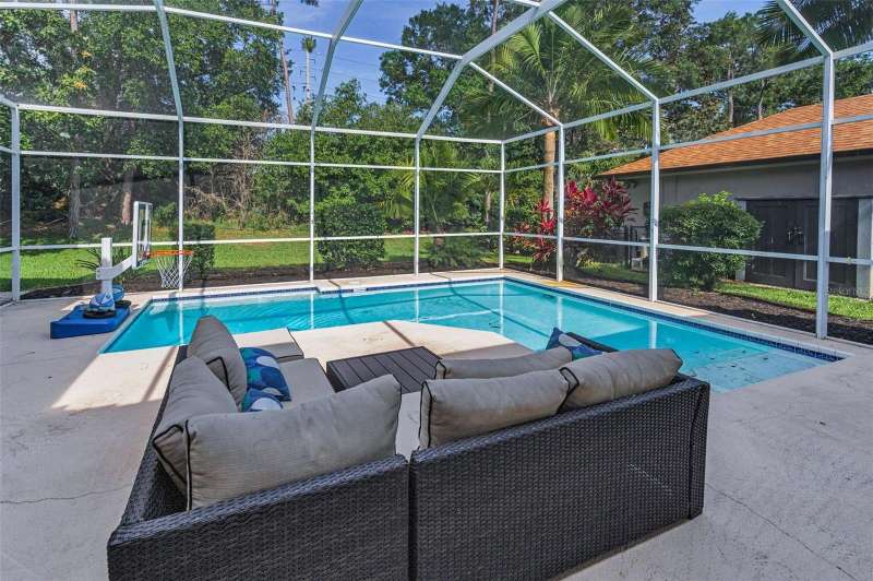 Under contract-accepting backup offers. Opportunity knocks! Here’s your chance to own a beautiful home in the sought-after Lansbrook community—at a more affordable price point—located in the desirable East Lake corridor of Palm Harbor. Nestled in the Aylesford section of Lansbrook, this property is surrounded by higher-priced homes, offering built-in value and great potential for future appreciation in a prime location. This smart investment features a spacious 4-bedroom, 3-bathroom layout with a desirable 3-way split floor plan. Enjoy the open-concept design that seamlessly connects the kitchen, breakfast area, and family room, along with a formal great room and dining room. The interior utility room adds convenience, while the screen-enclosed pool and lanai offer private outdoor living with no rear neighbors. Recent upgrades include a newer roof, new HVAC system with Wi-Fi thermostat, newer pool heater and pump, newer water heater, a water softener, and a reverse osmosis water filtration system in the kitchen. Residents of Lansbrook enjoy exceptional amenities, including a private lakefront park with boat launch, day docks, pavilion, picnic areas, and playground. The community also offers miles of jogging and biking trails, a sports park with pickleball, basketball, volleyball, and soccer fields, as well as multiple playgrounds. Monthly family-friendly events, like movie nights at the lakefront, bring neighbors together. Plus, you're just steps from the Fred Marquis Pinellas Trail, offering over 30 miles of scenic biking from Tarpon Springs to St. Petersburg.
