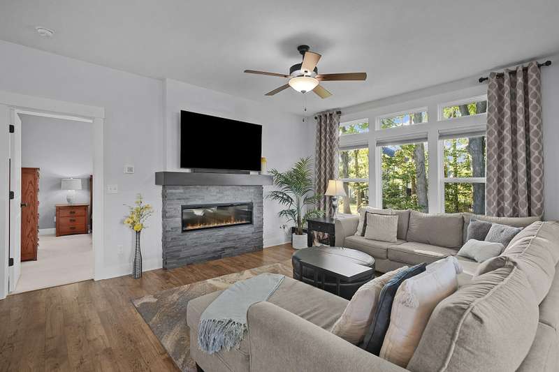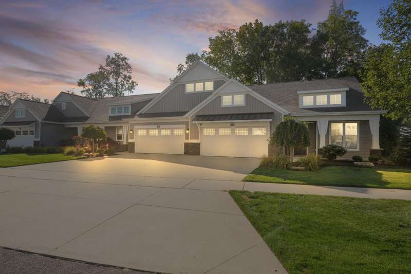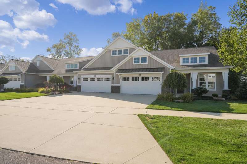 Stunning Byron Center condo now available in the highly sought-after Hidden Ridge Community, built by JTB Homes. This beautifully designed home offers 2 bedrooms, an office, bonus room and 2.5 baths, blending comfort with elevated style. The daylight lower level is perfect for entertaining, featuring a spacious rec room with large windows that flood the space with natural light, an additional bedroom, full bath, bonus room and tons of storage. On the main floor, you'll enjoy zero-step entry, 9' ceilings, guest bath and office (could be turned into another bedroom) including a stunning primary suite with a double vanity, dual shower/tub combo, and expanded closet. The gourmet kitchen is equipped with granite countertops, premium appliances, and a walk-in pantry, all centered around a modern electric fireplace in the living space. Step out from the dining area onto the covered deck and take in serene views - the perfect spot to relax and unwind. Every detail was thoughtfully designed.