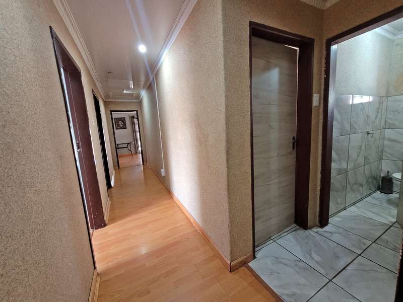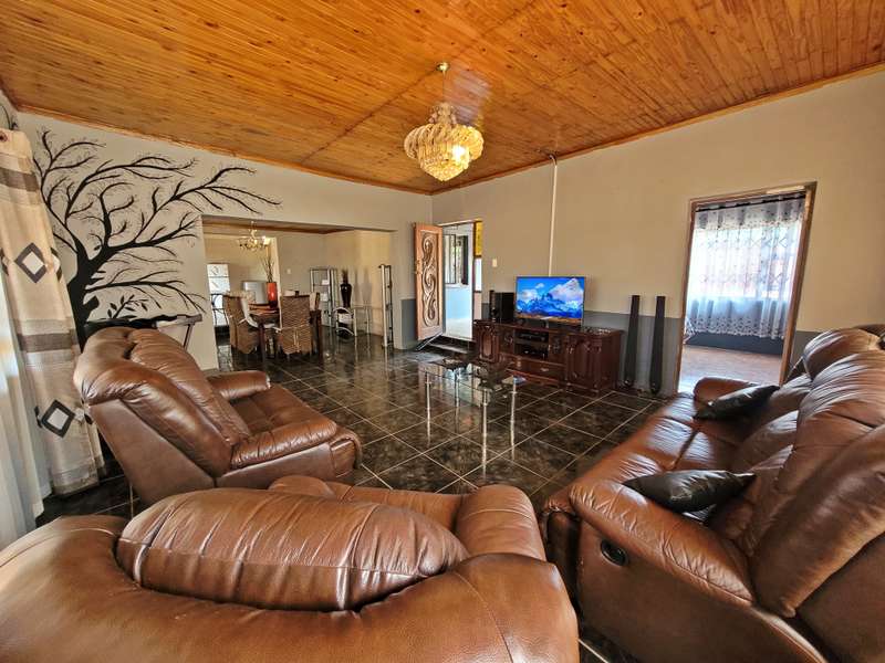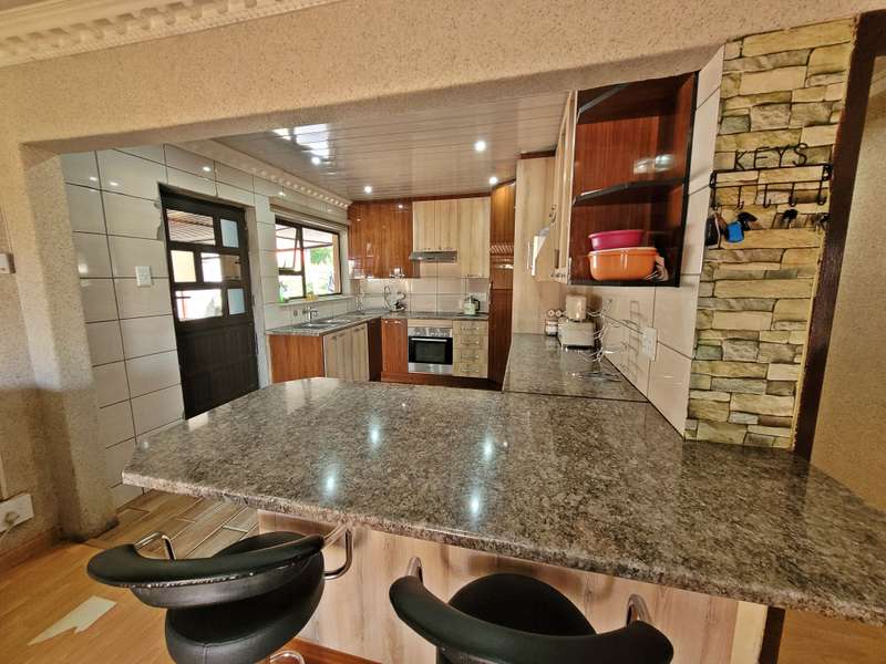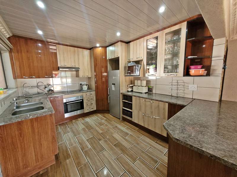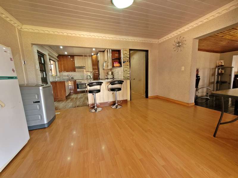 Welcome to your dream home! This spacious and modern property offers the epitome of comfortable living, boasting three open-plan living areas that seamlessly blend functionality and style. The smart kitchen is a chef's delight, featuring built-in cupboards for ample storage and convenience. With five bedrooms and two bathrooms, there's plenty of space for the whole family to relax and unwind. The property also includes three garages and a carport, ensuring ample parking for vehicles and extra storage. Step outside to enjoy the expansive yard, perfect for outdoor gatherings and activities. The built-in braai area provides an ideal spot for entertaining guests and enjoying the beautiful weather. Don't miss this opportunity to make this stunning property your new home sweet home!